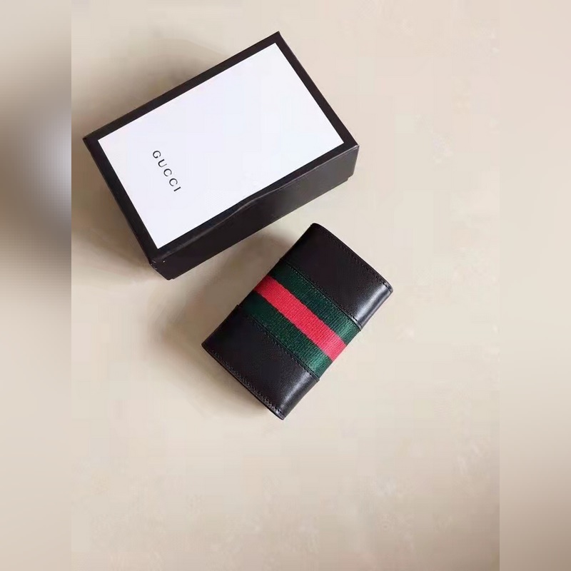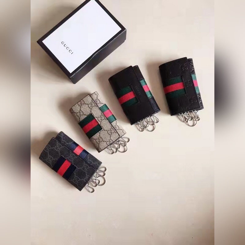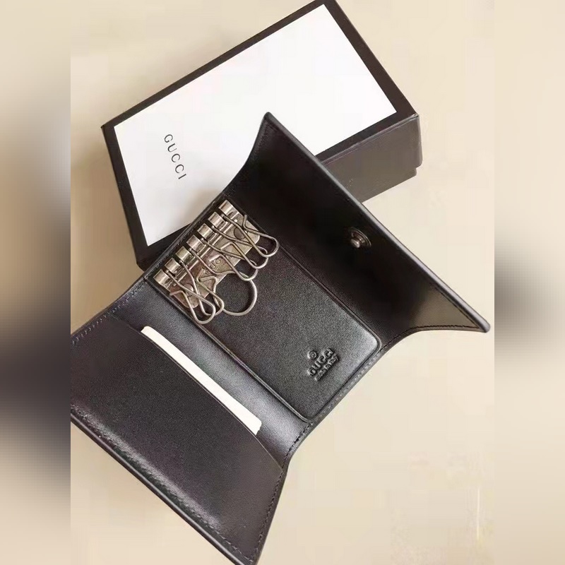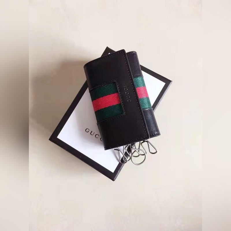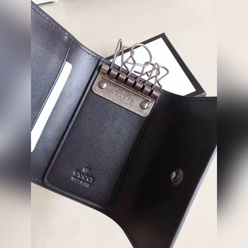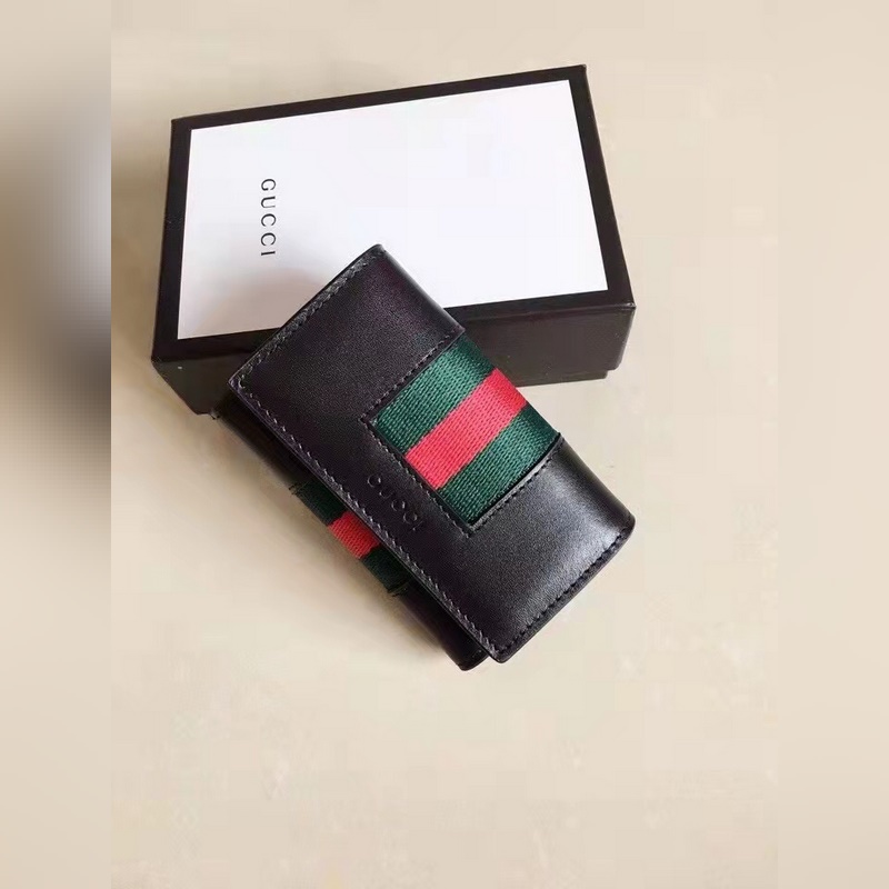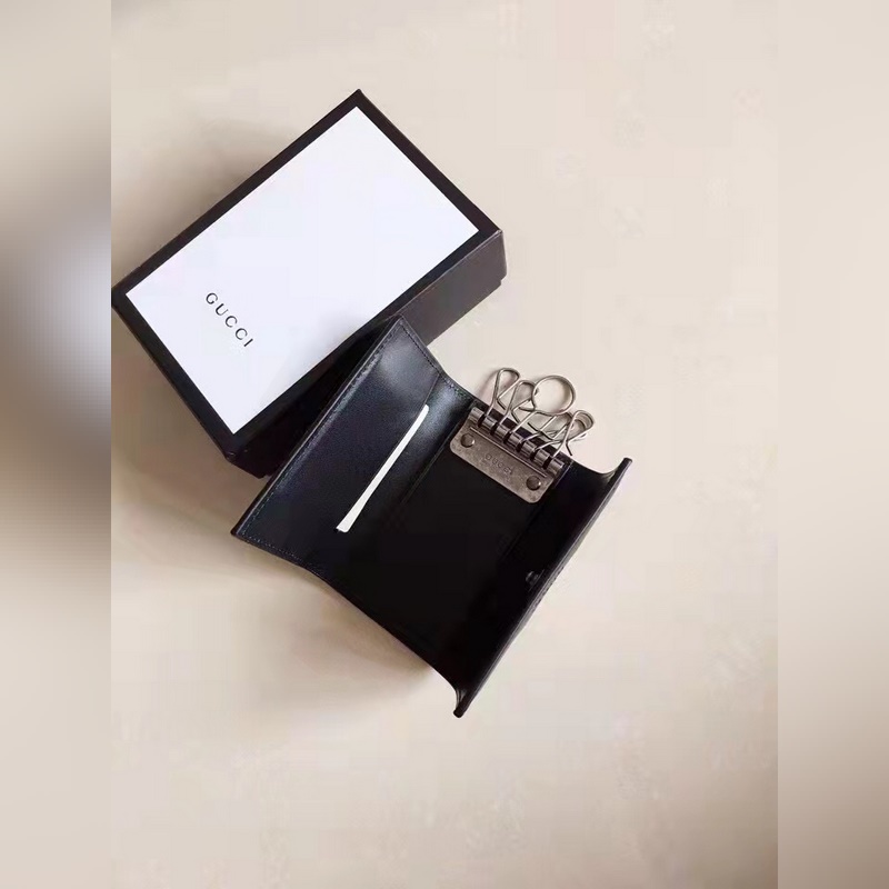 Uusin miesten avainlaukku alkuperäinen nahkainen kohokuvioitu punainen ja vihreä vyölogo ~ pieni ja hieno, käytännöllinen ja antelias, miesten pakollinen tavara, malli: 408828, väri: musta kohokuvioitu, koko: 10x7x2,5cm