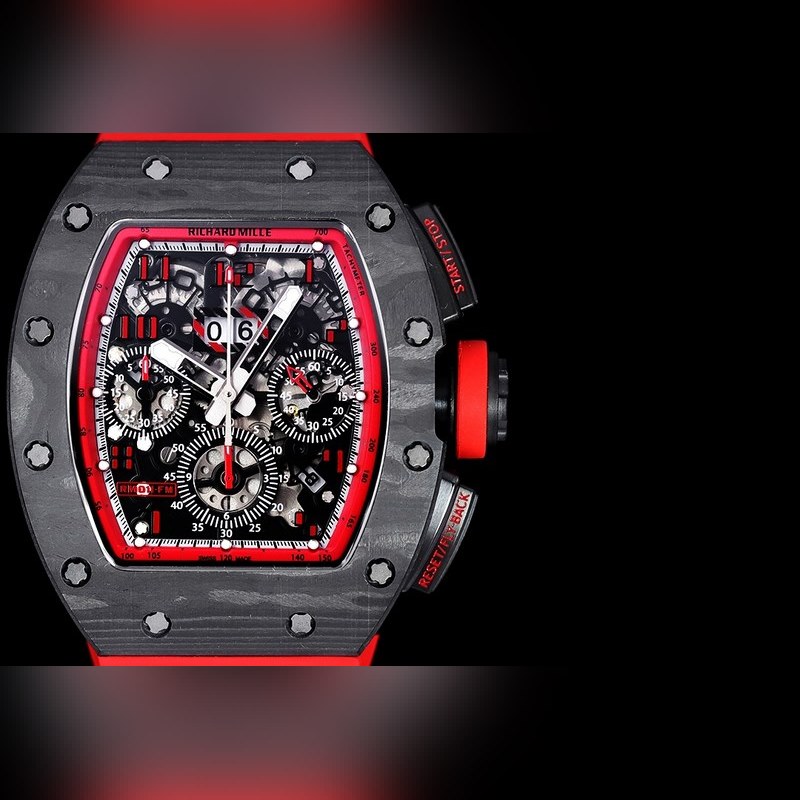 Hiilikuitumateriaali palauttaa alkuperäisen tekstuurin Korkealaatuinen alkuperäinen musta keramiikka Valkoinen keramiikka palauttaa alkuperäisen Täydellinen ergonominen muotoilu sopii yhteen brändin täydellisyyden tavoittelun kanssa. Jokainen RM 011:n komponentti on esteettinen ilmaus toiminnastaan. RM 11-FM -kello säilyttää tunnetuimman ikonisen muodon, mutta käytetty ammattitaito on vielä kaukana menneisyydestä. Kotelon titaanityyli näkyy kuvassa, mutta valittavana on myös ruusukulta- ja titaaniversioita, mutta olipa kummassa tahansa, niissä kaikissa on hienoksi muotoiltu harjattu pinta, johon on yhdistetty kiillotettuja viisteitä, mikä osoittaa terävän kontrastin. Varustettu 7750 kronografin mekaanisella liikkeellä, merkitty selkeästi toiminnallisilla fonteilla (Start/Stop ja Reset/Fly-back), sen suunnittelu on saanut inspiraationsa F1-kilpa-autojen polkimista. Kaikki nämä optimointimuutokset tekevät tästä RM 11-FM flyback-kronograafista automaattikellosta urheilullisemman ja trendikkäämmän kuin aikaisemmat tyylit.