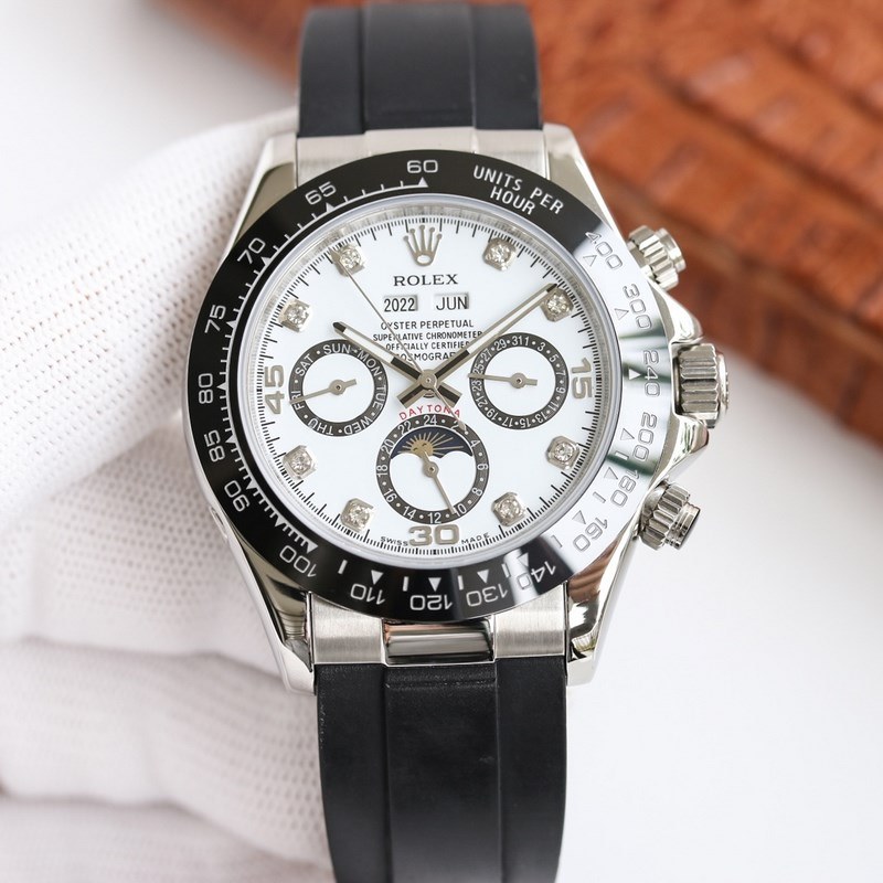 ROLEX Cosmograph Daytona Series – Kuuluisa tarkkuudestaan ja erinomaisesta laadustaan, se tuo klassikot takaisin ja antaa sinulle erilaisen tunnelman. Se on täydellisesti varustettu alkuperäisellä Cal.1141QP automaattisella käämittävällä monitoimilaitteella (vuosinäyttö, kuukausinäyttö, viikkonäyttö, 24 tunnin näyttö, päivämääränäyttö jne.) Se on vakaampi kuin 7750-laite, sveitsiläinen laatu 100 % safiirikristallilasipeili, ultraohut 316L eurooppalainen muotoilu, 4x-tyyppinen ruostumaton teräskotelo, syvän vedenpitävä 0 × combin0 1 kotelo. Sveitsiläinen ammattitekniikka, siitä on tullut huippuluokan kello urheilun ja vapaa-ajan alalla sekä putiikki, jonka keräilyyn maistuvat ihmiset kilpailevat.