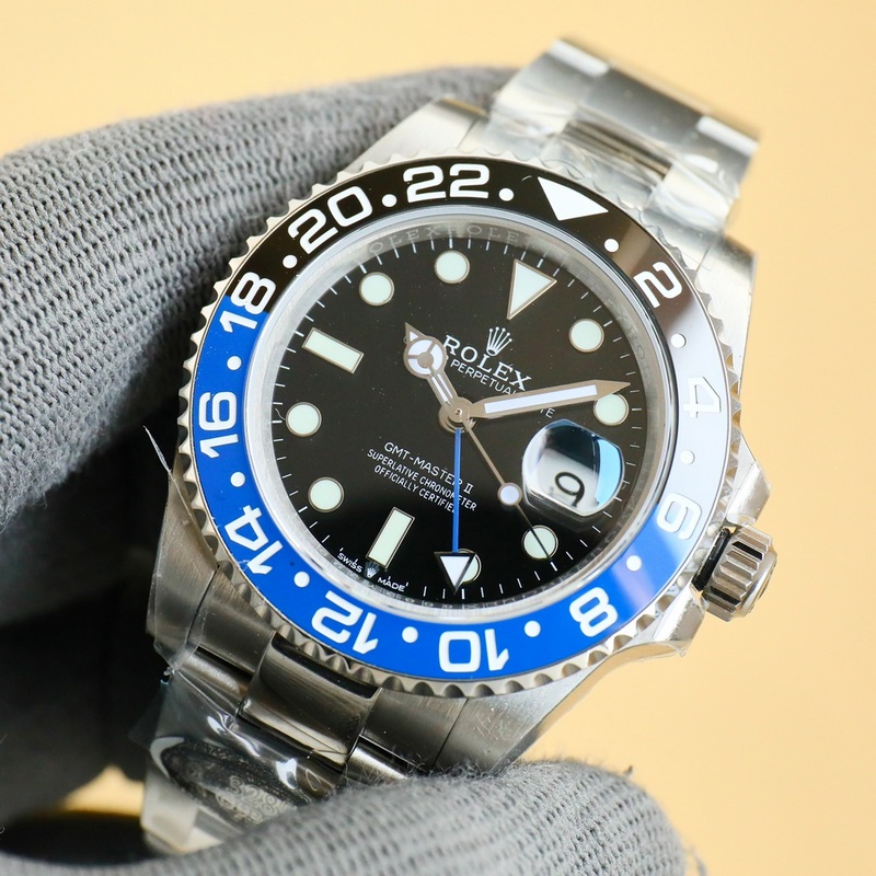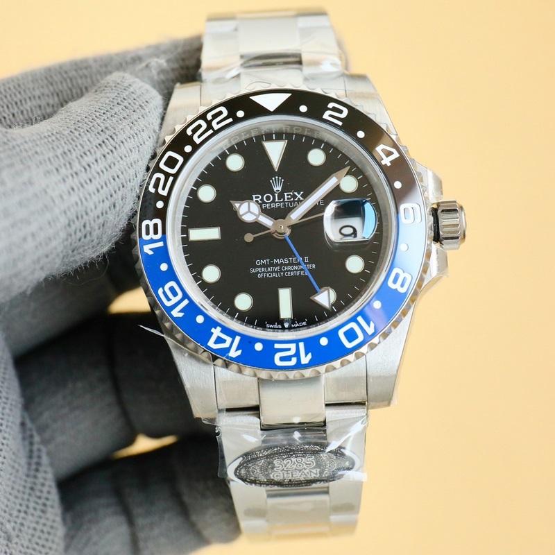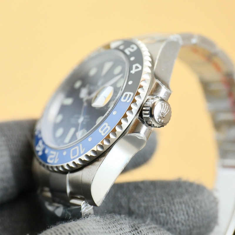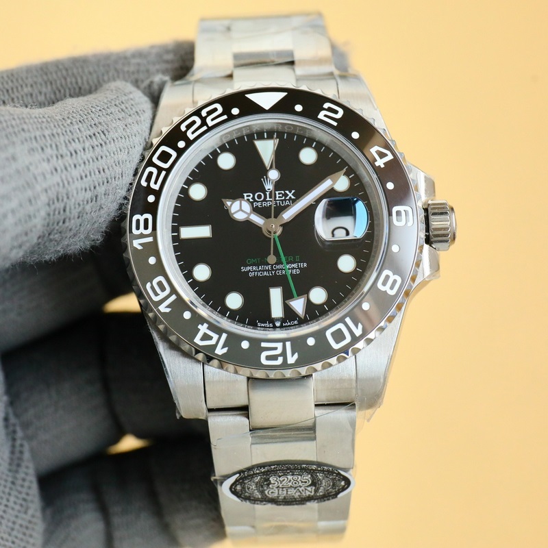 Rolex GMT Greenwichin päivitetty versio. Valmistettu 904L teräksestä, sama kuin alkuperäinen, yksiosainen keraaminen platinakehys on sama kuin alkuperäinen. Upouusi 3285 yksiosainen koneisto. Synkroninen alkuperäisen GMT-neulan kanssa ajan ja kalenterin säätämiseksi, lisävarusteet ovat universaaleja ja alkuperäisiä. 904L teräskotelo ja rannekoru, safiiripeili, supervaloisa, kaksisuuntainen keraaminen pyörivä kehys, taitettava lukko.