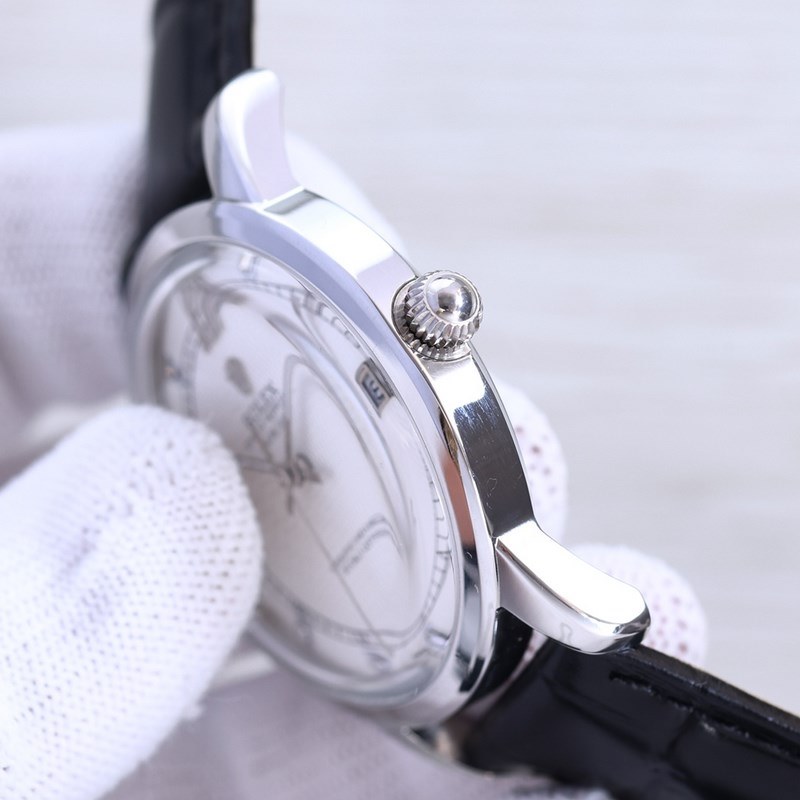 Herrasmieskello, joka sopii täydellisesti kaikenlaisiin tapahtumiin. Varustettu tarkalla ja vakaalla 9015 tuontiliikkeellä. 28 800 tärinää tunnissa, nollakorjauslaatu, alkuperäinen halkaisija 40 mm, Sveitsistä tuotu teräshihna mukavuuttasi varten, 100 metrin vesitiivis kuori, mestaritason ammattitaito sekä uuden aikakauden koneen korkean teknologian taonta, järkyttävää ja jaloa. Olet sen ansainnut