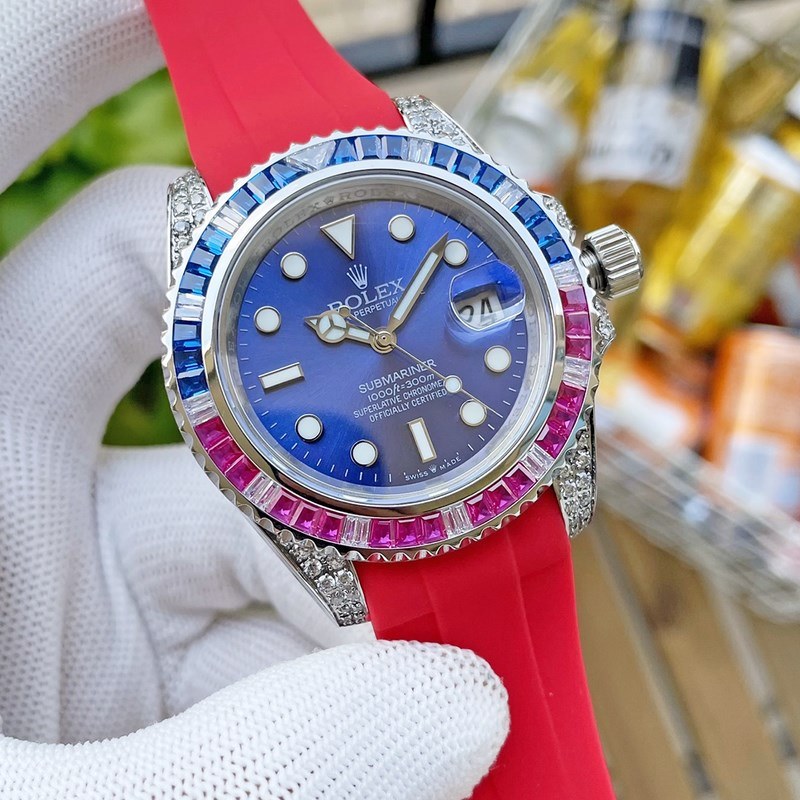 Jatka Rolex Submarinerin olemusta, Submarinerin räätälöity versio jalokivikehyksellä on nyt saatavilla. [Väri] Yhdistämällä kädet huippuluokan korutehtaiden kanssa 72 mustaa, vihreää ja sinistä safiiria on upotettu Submariner-kehykseen vastaavissa väreissä, ja kotelon korvavarressa on timantteja, mikä on kuin säteilevä valo ja katseenvangitsija. Kone on edelleen varustettu uudella alkuperäisellä Citizen 8215 täysautomaattisella mekaanisella liikkeellä, jolla on tarkka ajanotto, erinomainen suorituskyky ja jopa 48 tunnin tehoreservi. 316L ruostumattomasta teräksestä valmistettu kotelo on upotettu samanvärisillä jalokivillä kuin musta, vihreä ja sininen Submariner, ja kotelon korvavarret ja kruunun hakaneula on sovitettu yhteen Swarovskin kristallitimanteilla. Se on erittäin ylellinen ja siinä on rohkea persoonallisuus. Klassiset mallit eivät ole enää ristiriidassa keskenään. [Väri] Naarmuuntumaton safiirilasipeili, sininen vaaleansininen suurennuslasi-kalenteriikkuna, erinomainen ammattitaito, joka perii täydellisesti alkuperäisen sukellussuorituksen. Kirjaimellinen asteikko on selkeä, ja laskurin uusimmassa versiossa on supervahva ja pitkäkestoinen jäänsininen valo. Hihnoja on modifioitu tällä kertaa kolmella eri lokerolla: silikoni-, nahka- ja alkuperäisillä teräshihnailla. Saatavilla on erilaisia ​​hihnoja, jotka sopivat erilaisiin käyttötarpeisiisi.