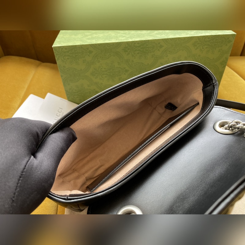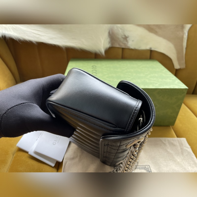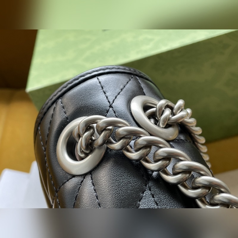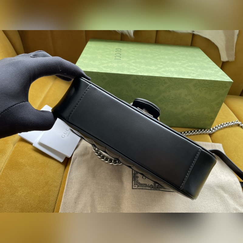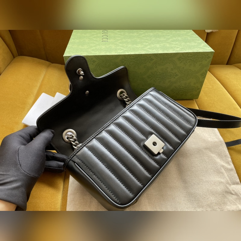 Malli nro: 446744 Sitä ylistetään ikonisesta tikatusta nahasta ja kaksikirjaimista yhteenkudotuista tarvikkeistaan. Se sisältää pysty- ja twill-kuvioita. Koko: 22/13/6 cm. Mukana alkuperäinen pakkaus