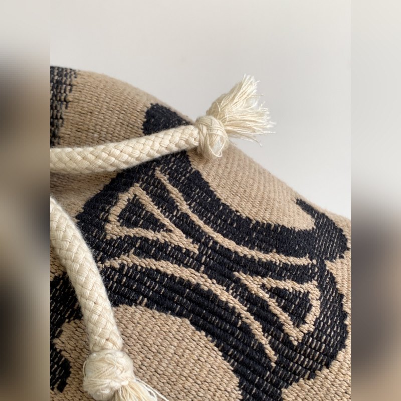 Kangas / lehmännahka, kangasvuori, kädessä pidettävä, kiristysnauha ranneke, nahkainen kahva 13 X5 cm pitkä: br>15 x 5 cm1 cm