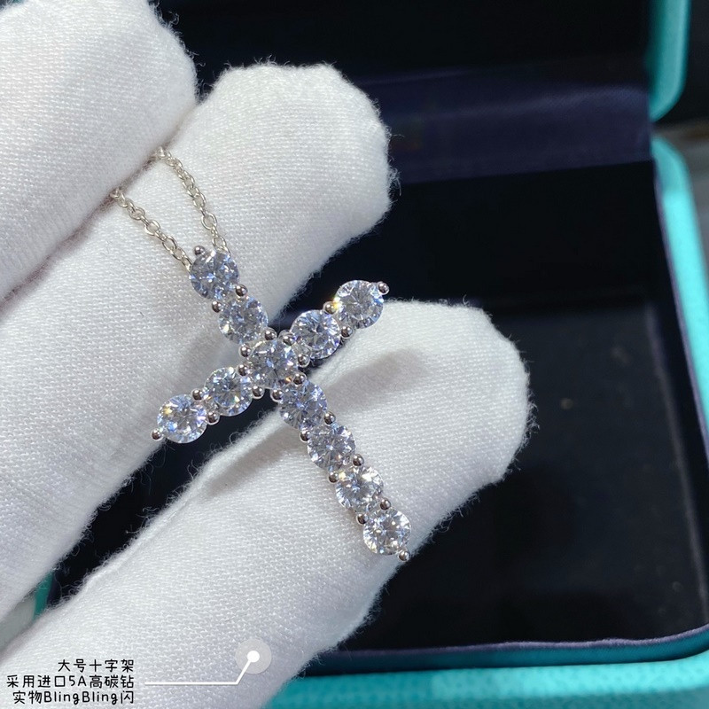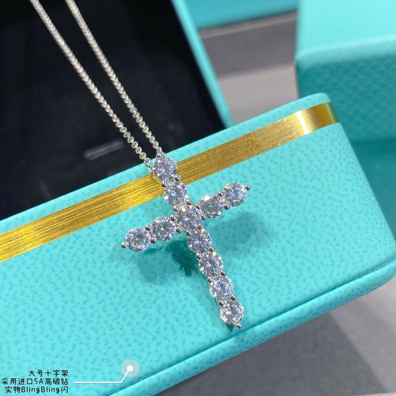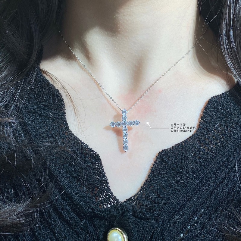 9 2 5 8690150 Seiko-versio Tiffany täysi timantti iso risti kaulakoru eri fashionistas internet-julkkikset muoti all-match artefakti S925 sterlinghopea Tiff iso merkki sama tyyli ainutlaatuinen yksinkertainen muotoilu yksinkertainen tyyli ei allerginen ja ei haalistu jumalatar go