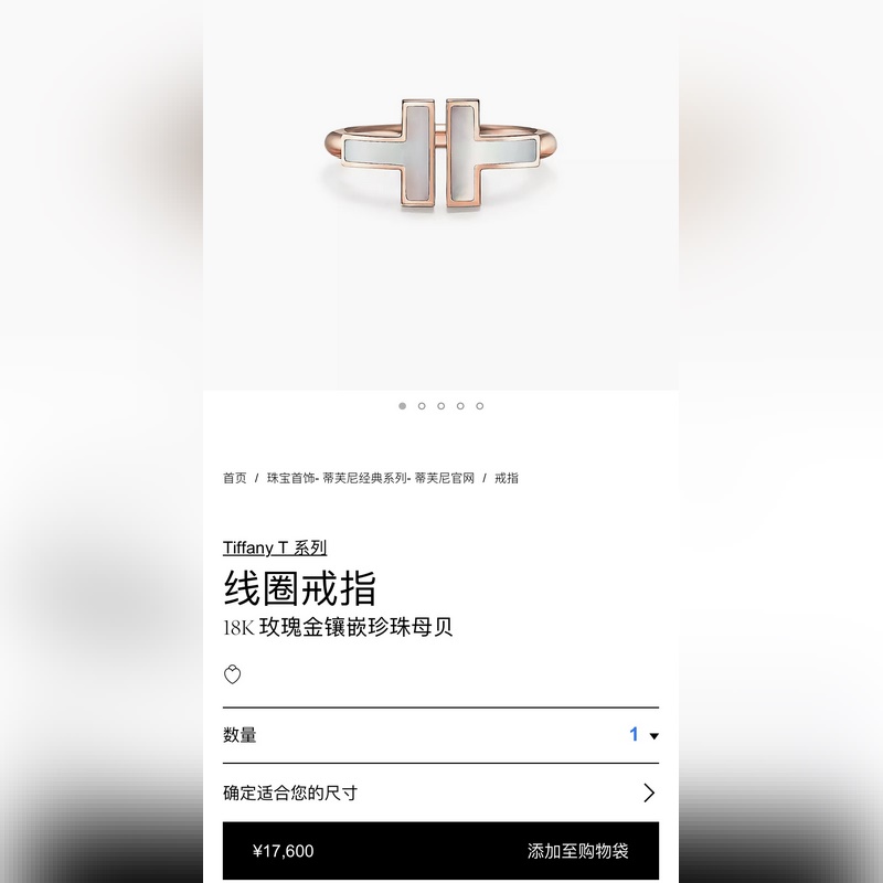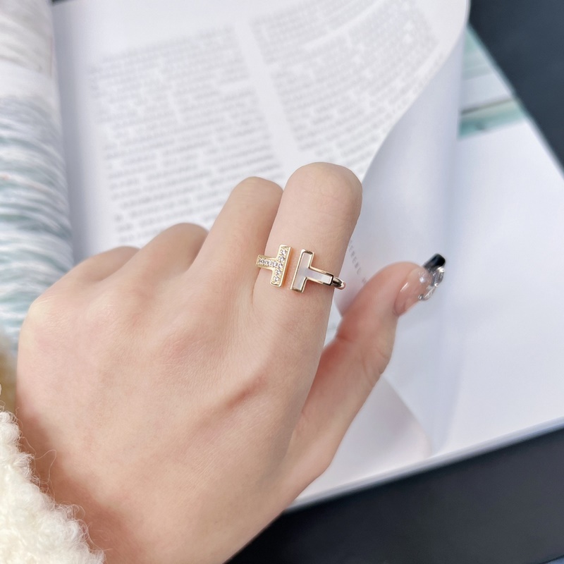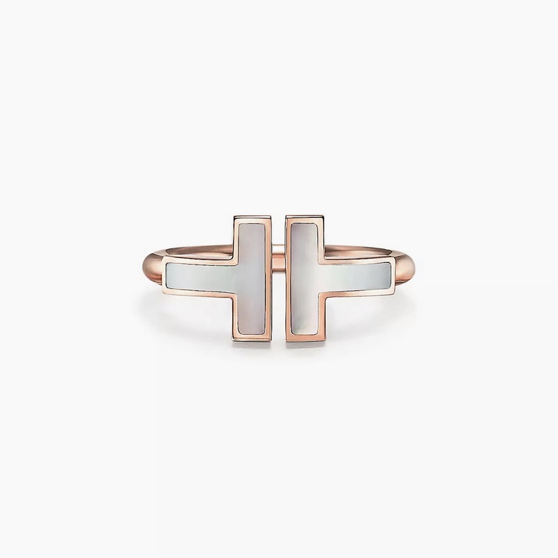 Tiffany&co Tiffany Classic T Series White Shell Diamond Rose Gold Double T-sormus