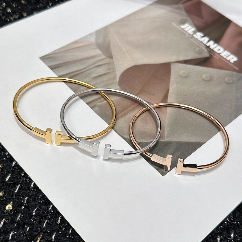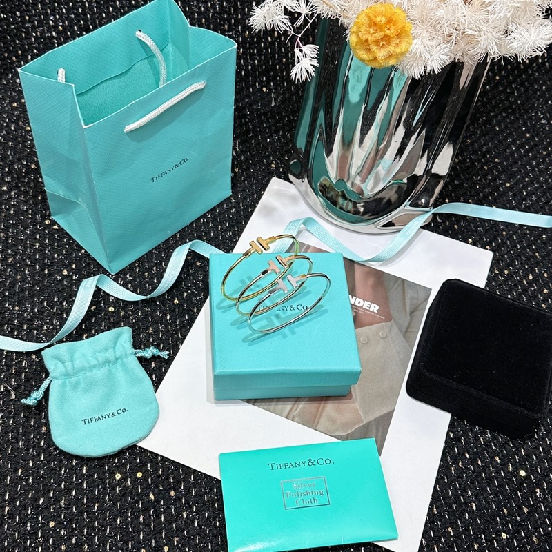 Tiffany&co Tiffany classic T-sarjan kiiltävä hopea ruusukulta tupla T-rannekoru