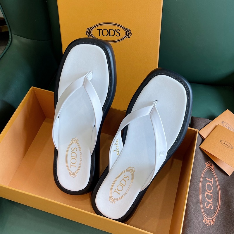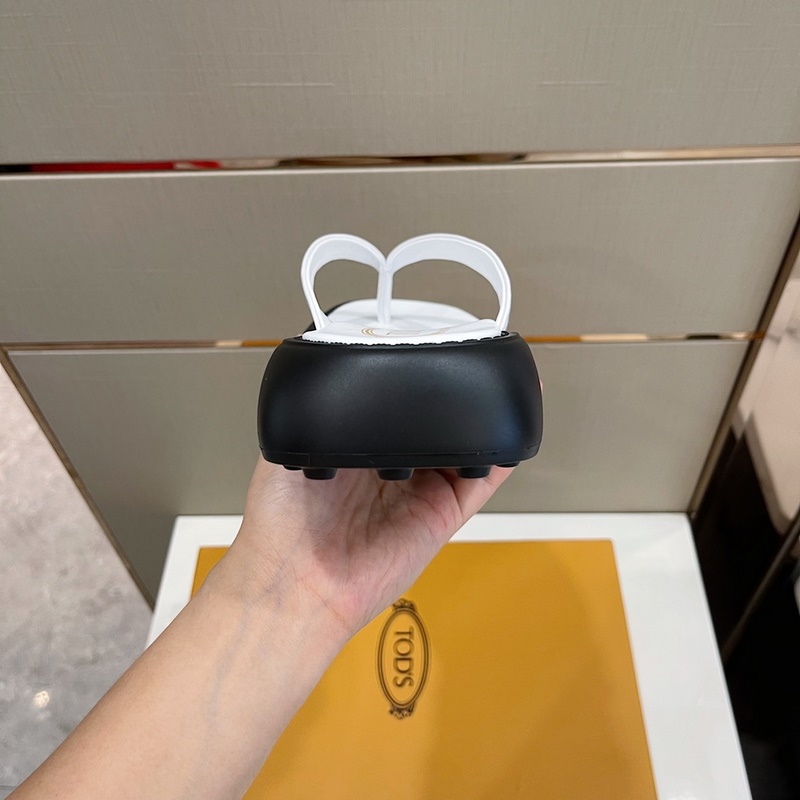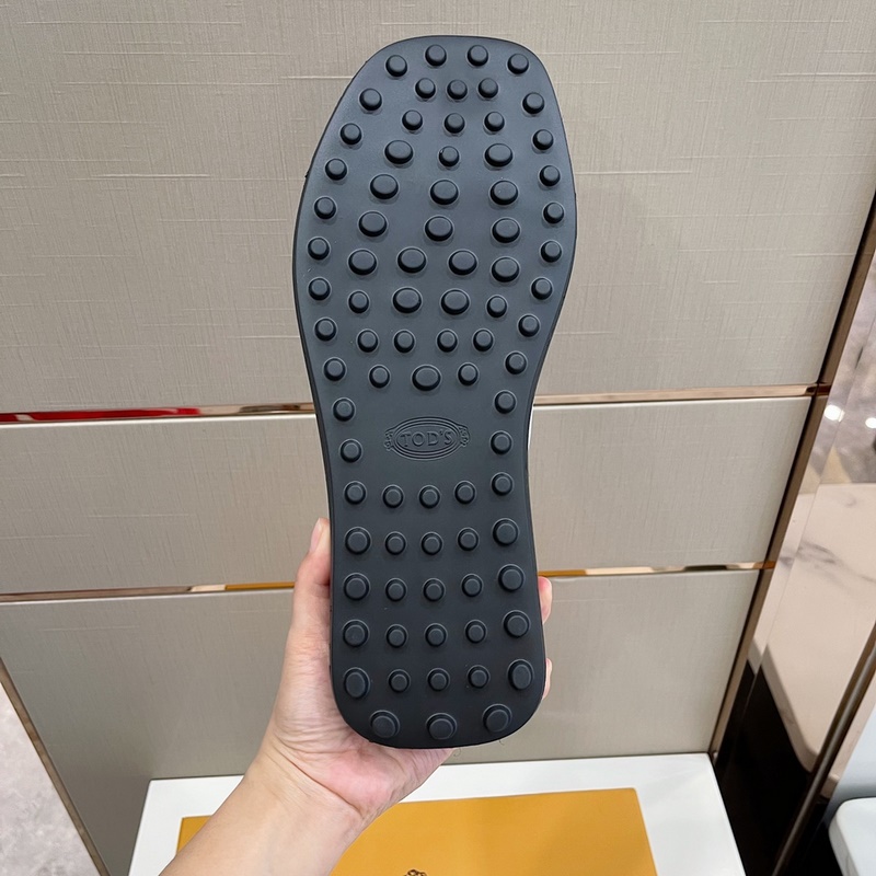 Tods-nahkaiset tossut Tämä sandaalipari on valmistettu hienosta nahasta, ja siinä on merkkimetallisolki hihnassa, pehmustava sisäpohja ja kumiläpiviennit vakautta ja keveyttä varten. Täysnahkainen + läpivientikumiulkopohja Koot: 38-45