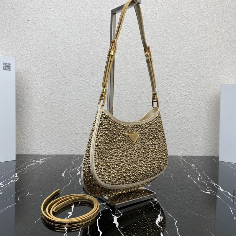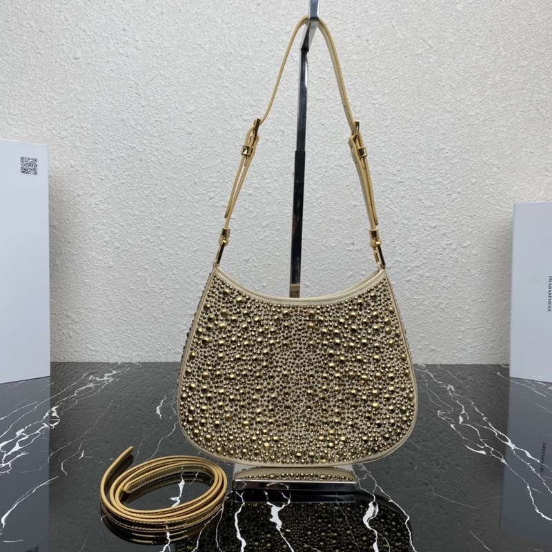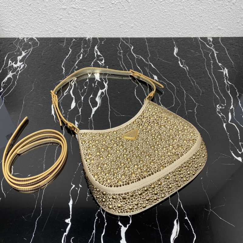 Alkuperäinen vuoden 2023 uusi kullanvärinen tähtikirkas kainalolaukku 1BC169 Tämä Cleo-satiinikäsilaukku on päällystetty erikokoisilla kimaltelevilla tuontikristalleilla, ja siinä on kaksi säädettävää, vaihdettavaa lehmännahkaista olkahihnaa helpon olka-/ristikon suunnittelun helpottamiseksi. Retro kaareva siluetti on ainutlaatuinen. Tämä tähtikirkas kainalolaukku näyttää naisellisemmalta, tyylikkäämmältä ja modernimmalta. Se on niin kaunis, että olet aina huomion keskipisteenä missä ikinä menetkin. Pidä kiirettä ja hanki se. Koko: pituus 22 x korkeus 18,5 x pohja 4,5 cm