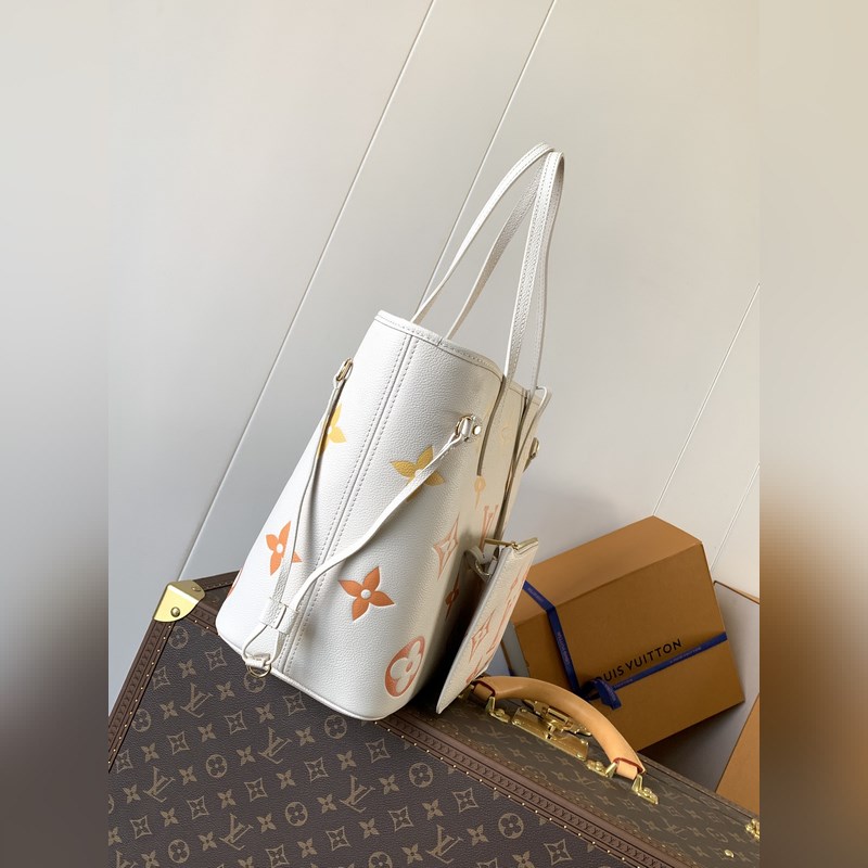 Neverfull medium ostoskassi Uudelleensuunnitellussa sisälaukussa on käytetty raikas kangasvuori ja vintage-yksityiskohtia, jotka ovat saaneet inspiraationsa arkistoista. Kiitettävin on irrotettava vetoketjullinen kytkin, jota voidaan käyttää herkänä kytkimenä tai lisätaskuna. 32x29x17cm