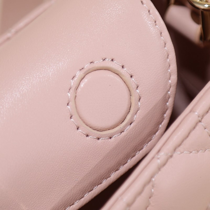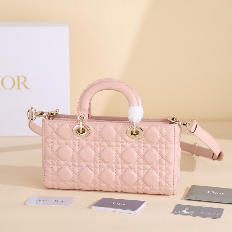 Tämä Lady D-Joy -käsilaukku ilmentää Diorin syvällistä näkemystä eleganssista ja kauneudesta. Muodikas ja tyylikäs muotoilu on ajatonta ja korostaa Lady Dior -sarjan yksinkertaista estetiikkaa. Se on valmistettu huolellisesti mustasta lampaannahasta, koristeltu rottinkikuvioompeleilla ja yhdistettynä vaalealla kullalla viimeistellyllä metallilla D.I.O.R. riipus parantaa tyyliä ja lisää ripauksen ketteryyttä hienoon ääriviivaan. Irrotettavan ketjun olkahihnan ja säädettävän ja irrotettavan nahkaisen olkahihnan ansiosta sitä voidaan kantaa käsissä tai poikkivartalossa, mikä on ihanteellinen valinta päivittäiseen muotoiluun.