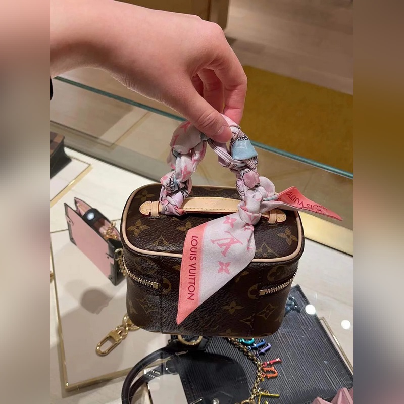 Silkistä kaksikerroksista streameriä voi käyttää molemmin puolin. Tribute To silkkipanta asettaa klassiset design-kuviot, kuten Alma-, Seedy-, Bo te Chaeau- ja Dauhine-käsilaukut, keskipisteeseen, kunnioittaen kaikkia Monogram-kuviota ja brändilogoa hienoilla ja monimutkaisilla siveltimenvetoilla korostaen Louis Vuittonin eleganttia tyyliä.