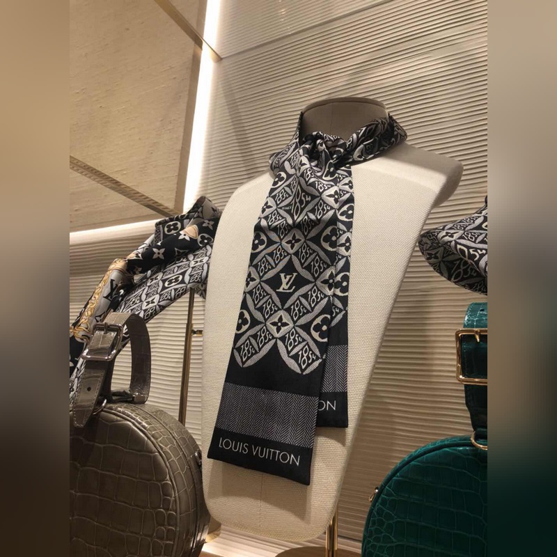 Silkistä kaksikerroksista streameriä voi käyttää molemmin puolin. Tribute To silkkipanta asettaa klassiset design-kuviot, kuten Alma-, Seedy-, Bo te Chaeau- ja Dauhine-käsilaukut, keskipisteeseen, kunnioittaen kaikkia Monogram-kuviota ja brändilogoa hienoilla ja monimutkaisilla siveltimenvetoilla korostaen Louis Vuittonin eleganttia tyyliä.
