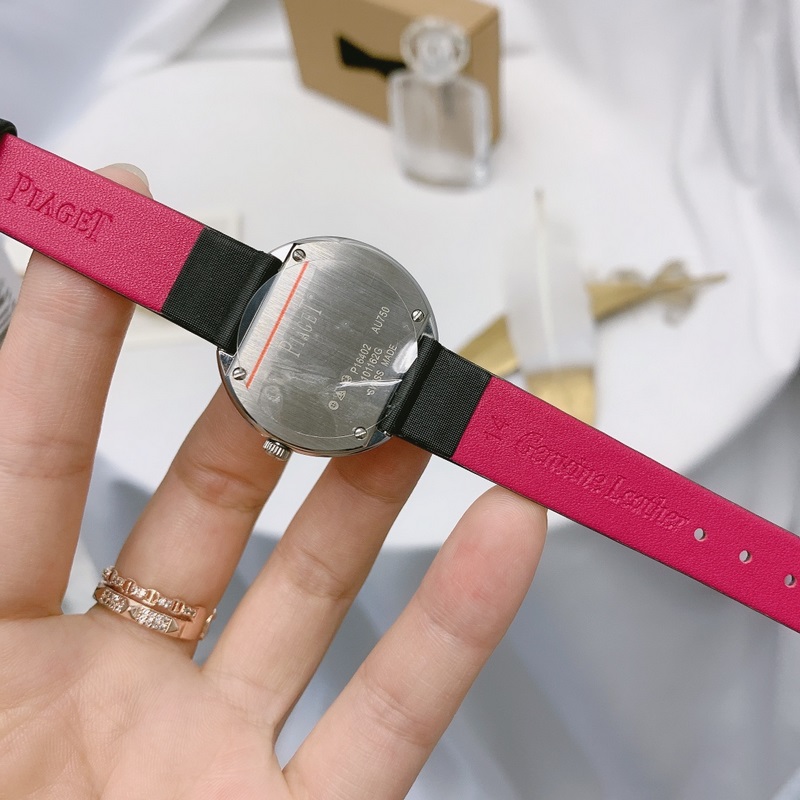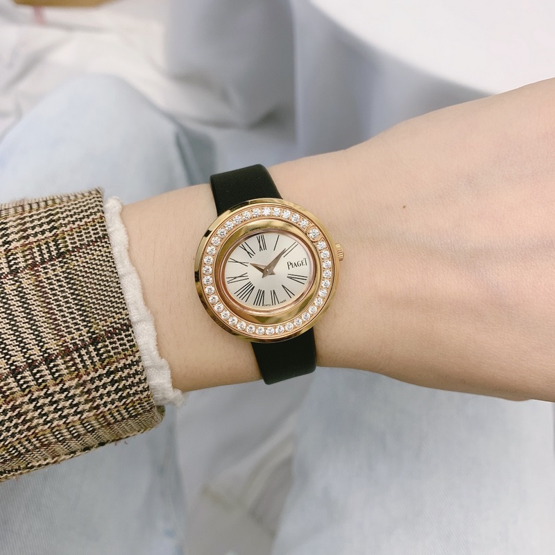 Viimeisimmät naisten käytännön kuvat ovat upeita Piaget-PIAGPOSESSION-sarjan naisten nahkarannekellossa, upotettu timanteilla, pyörivä kehys. Tämä huippuluokan naisten kello on saanut inspiraationsa Posession-sarjan ikonisesta pyörivästä renkaasta, jonka häikäisevät timantit korostavat ikonista tyyliä. Tuotu sveitsiläinen liike, safiirikristallilasi, alkuperäinen tappisolki, helppo käyttää koko: 29mm