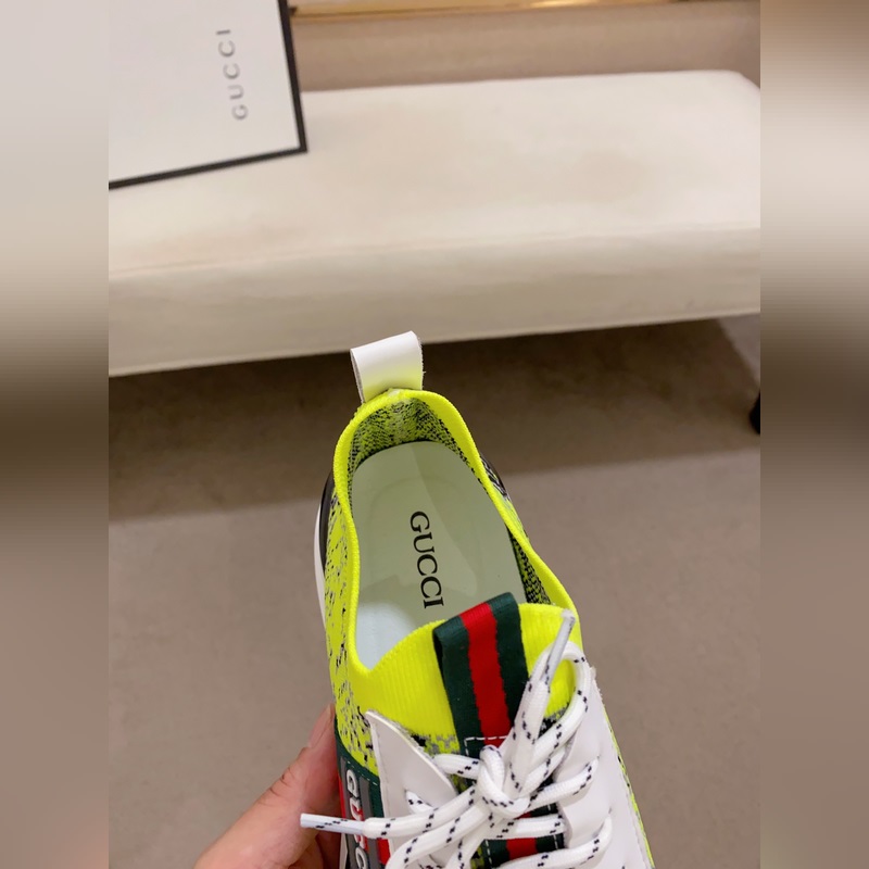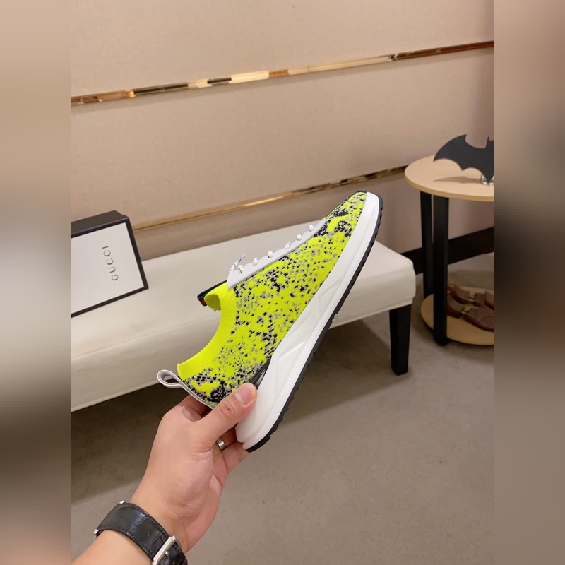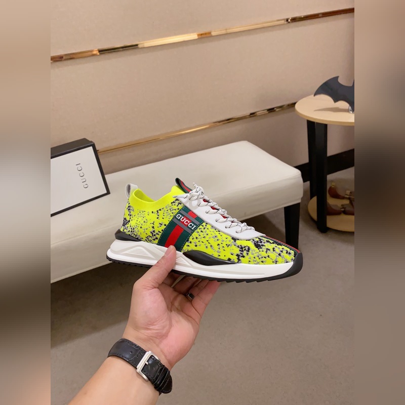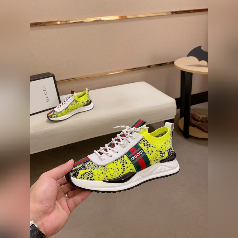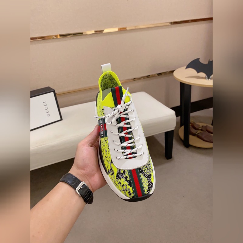 Uudet Gucci-päälliset on valmistettu maahan tuodusta lentävästä kudotusta kankaasta. Vuori on valmistettu tuontivesivärjätystä lampaannahasta. Alkuperäinen ulkopohja on muotoiltu vastaamaan jokaisen miehen identiteettiä. Se näyttää tyylikkäältä ja vakaalta päällä. Huippuluokan mukautettu laskurin alkuperäinen jäljennös. Tuulesta ja sateesta huolimatta kenkä pysyy ennallaan ja kestää ajan testin. Koko: 38-44.