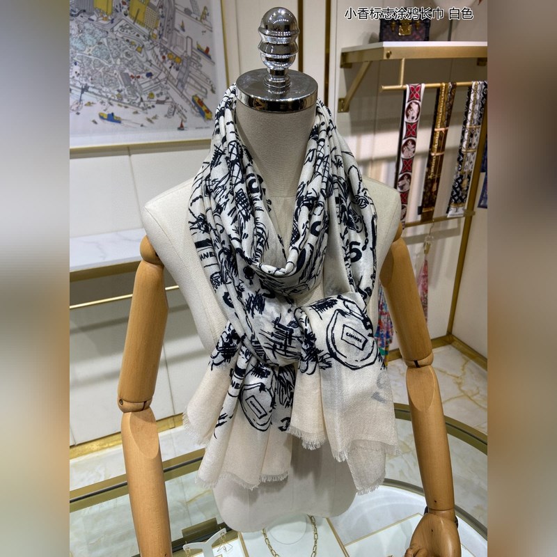 Uusi Chanel Graffiti Long Cashmere -huivi, korkealaatuinen, ehdottomasti!