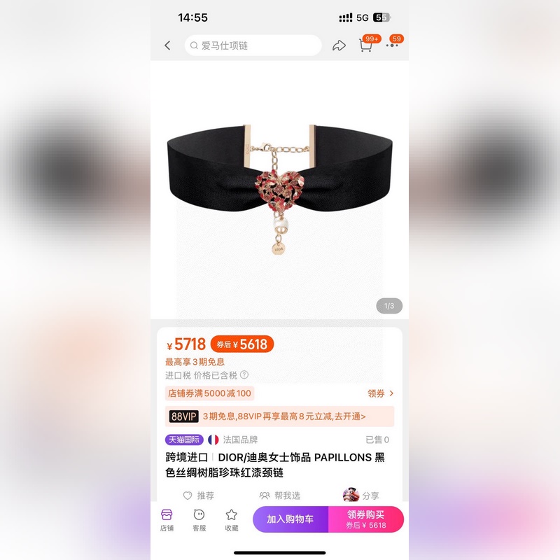 Uusi DIOR-kaulakoru, messinkimateriaali, joka on yhdenmukainen laskurin kanssa, superrakenne
