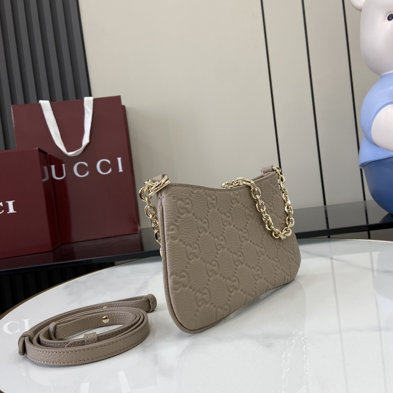Uusi GG Emblem -kokoelma tulkitsee uudelleen brändin ajattoman eleganssin ja käsityötaidon. Tämä superminilaukku tulkitsee uudelleen brändin uuden pienet lisävarustesarjat ja on valmistettu klassisesta GG-rakeisesta nahasta. Malli on huolellisesti sovitettu ketjun olkahihnan kanssa, ja mukana tulee säädettävä nahkainen olkahihna.