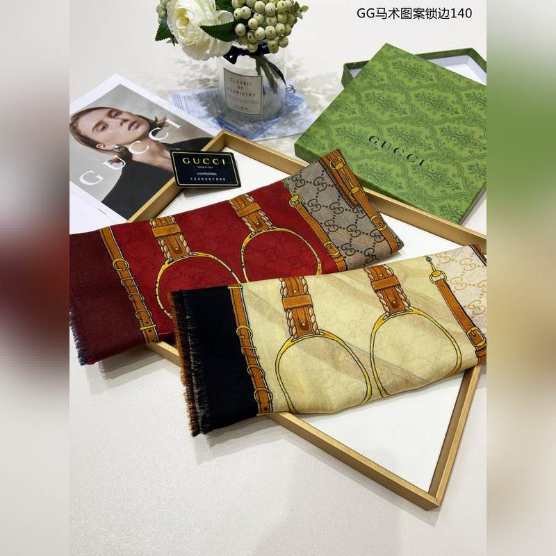 Uusi tulokas GG ratsastuskuvioinen lock-edge 140 hapsuinen kashmirpainattu neliömäinen huivi, jossa on käytetty klassista GG-kuviota keltaisella hevospainatuksella ja yksivärisellä reunuksella, joka osoittaa runsaan ja elegantin luonteen. GG-kuvio on kunnianosoitus brändin perustajan Guccio Guccin poikkeukselliselle kokemukselle, ja hevoskuvio korostaa merkin ratsastusalkuperää. Neliömäinen huivi: 140*140cm 100% kashmir neliöhuivi Italialainen luomus