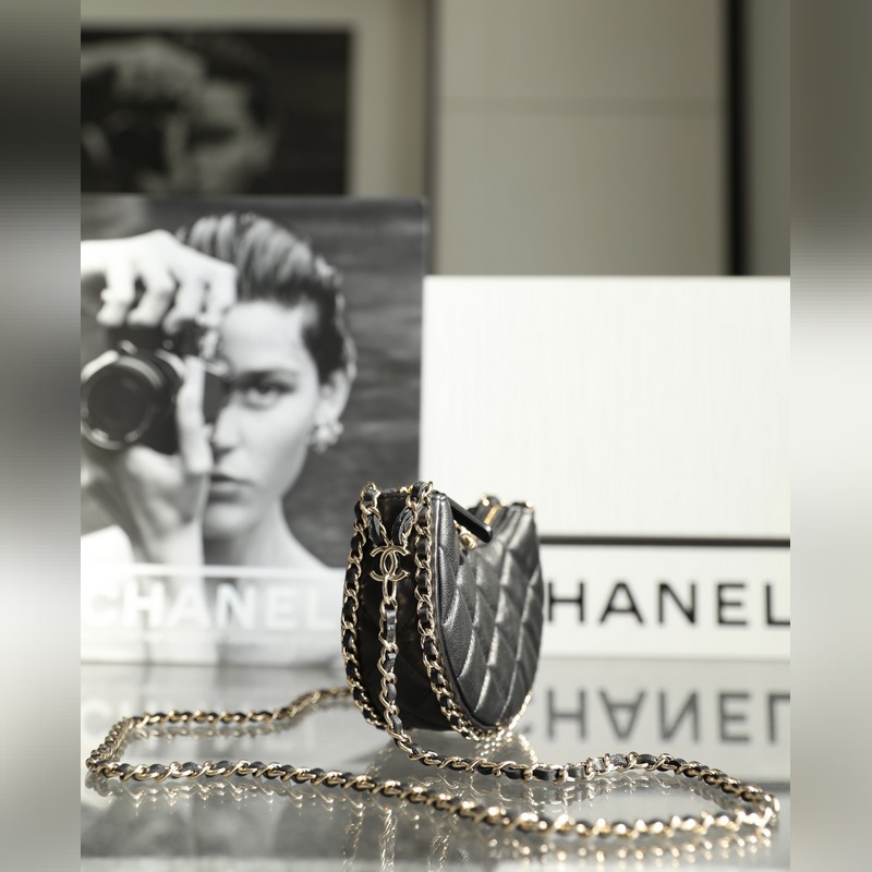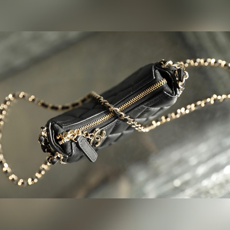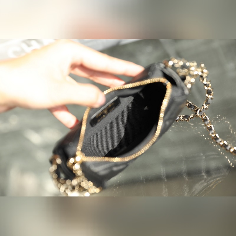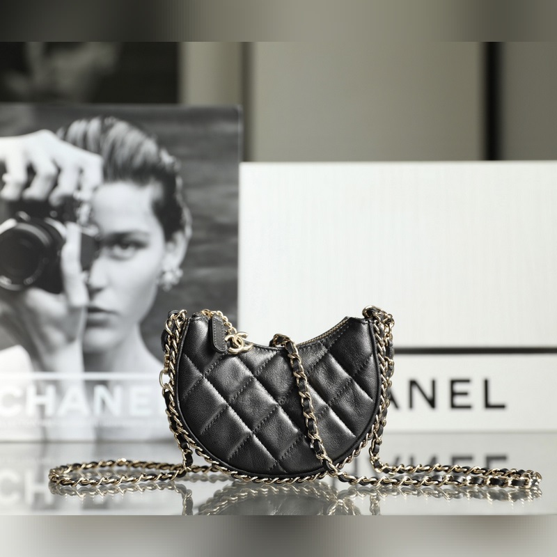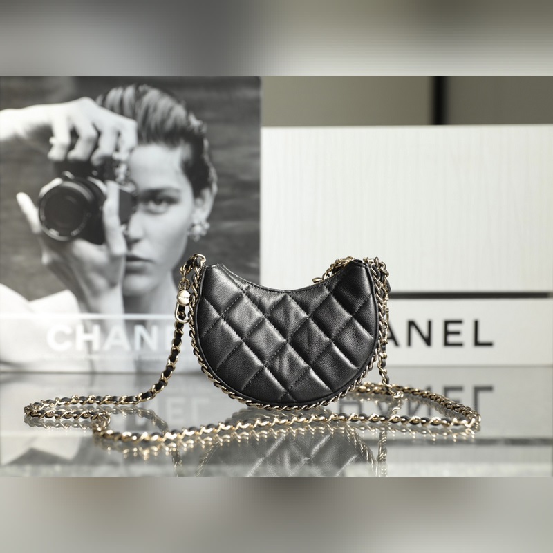 Chain Half Moon Clutch Black