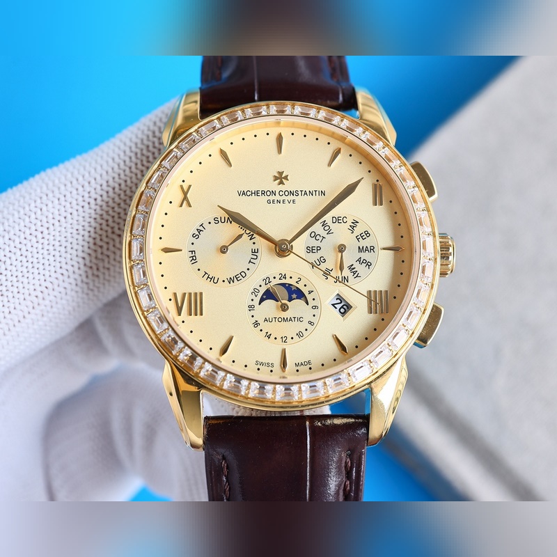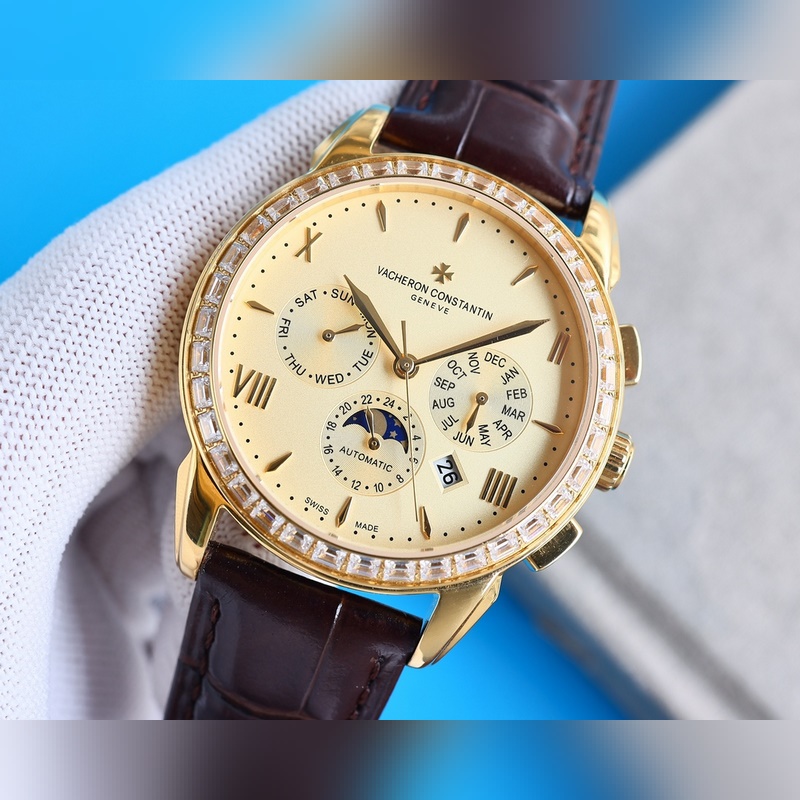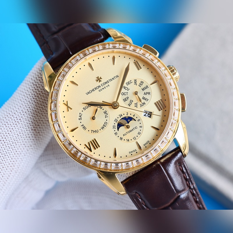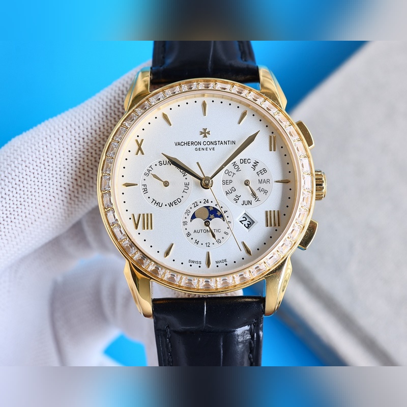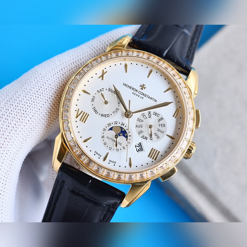 Vacheron Constantinin monimutkainen toiminto kronografisarja, yksinkertainen ja tyylikäs muotoilu, klassinen ja ajaton, varustettu alkuperäisellä maahantuotu 9100 liikkeellä (nolla vika), joka kerää auringon, kuun, tähdet, päivämäärän, viikon ja kuukauden, ja on supervedenpitävä toiminto [vahva] safiiripeili, italialainen tuontinahka, alkuperäinen tappisolki. Sveitsiläistä kellotekniikkaa noudattaen se luo täydellisiä tuotteita, kokoelmia, lahjoja ja ensisijaisia valintoja.