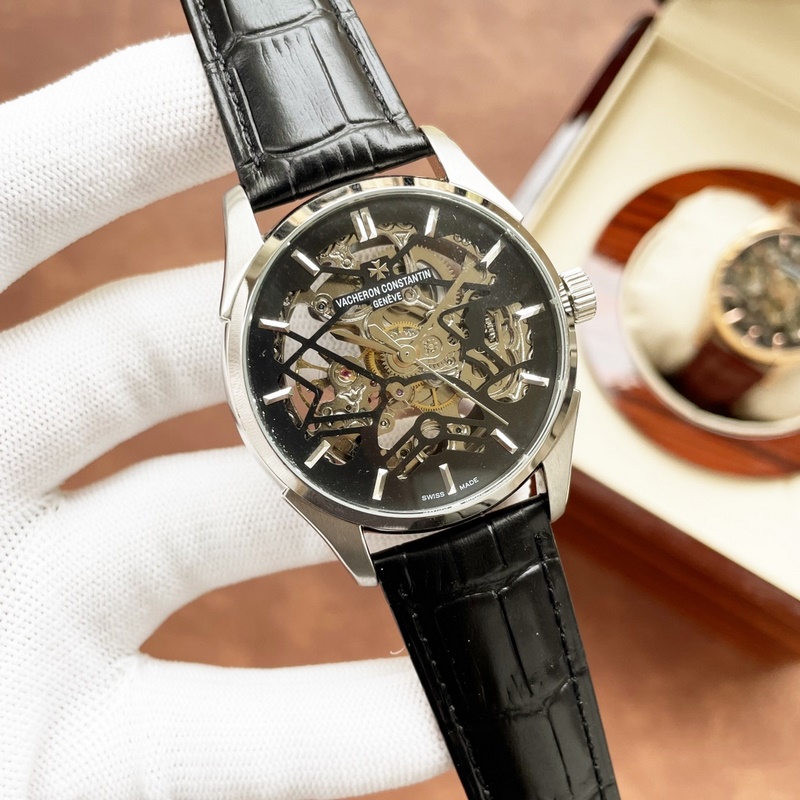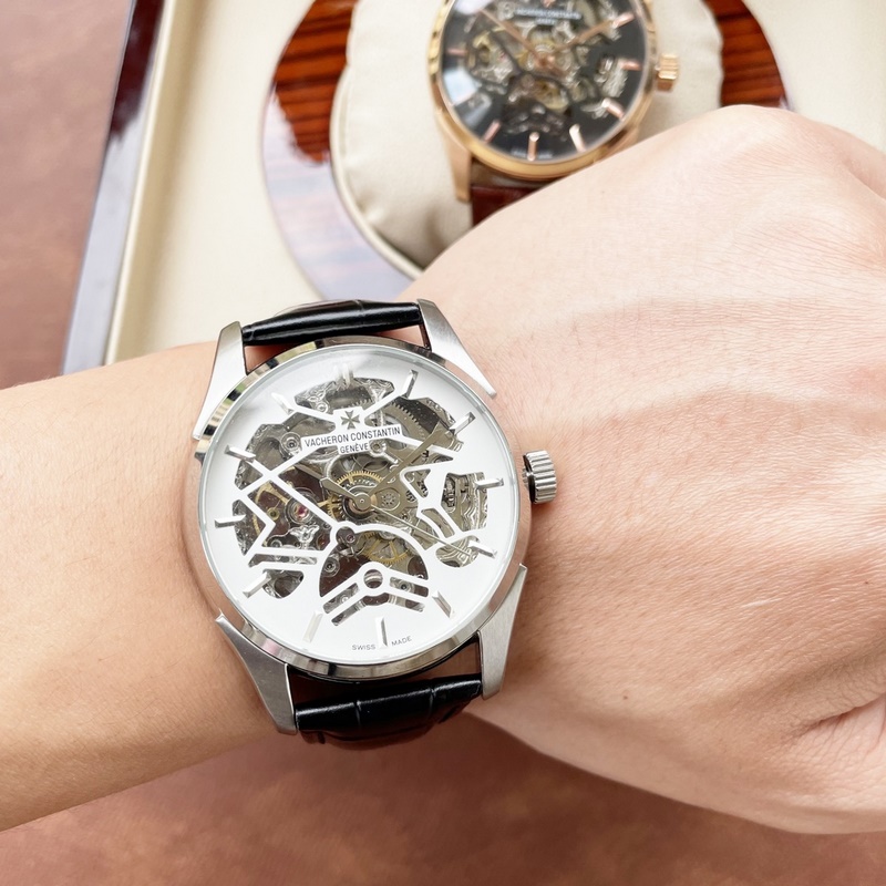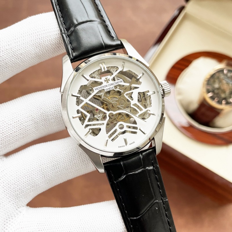 Vacheron Constantin miesten kello, räjähtävä ontto muotoilu, hieno ammattitaito, ainutlaatuinen kekseliäisyys, jalo ja elegantti, herrasmiestyyli. Se ottaa käyttöön täysin automaattisen mekaanisen liikkeen, top 316 ruostumattomasta teräksestä valmistettu kotelo, maahantuotu vasikkanahkahihna, mineraalinen superpeili, koko 43-13