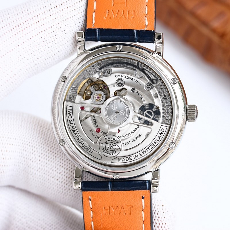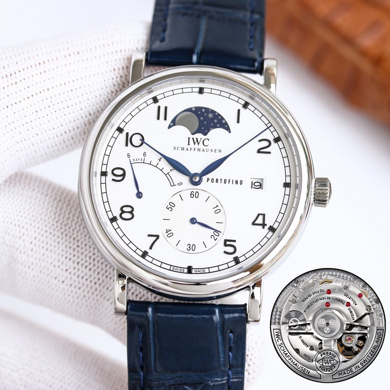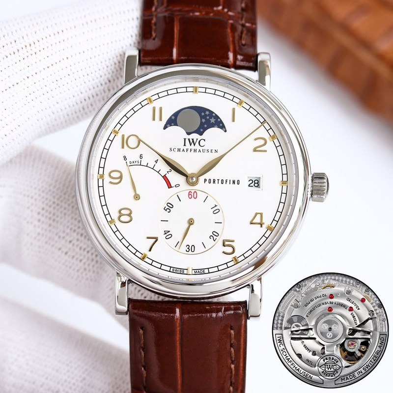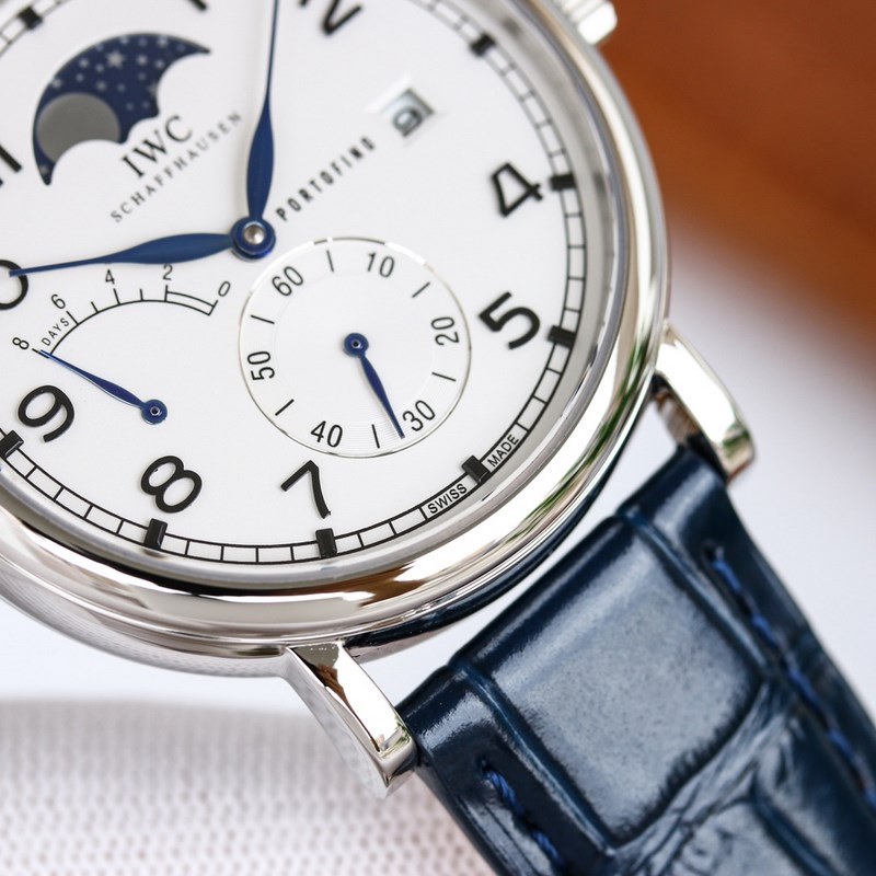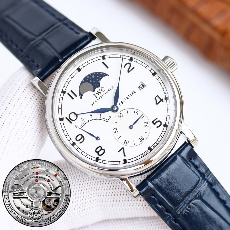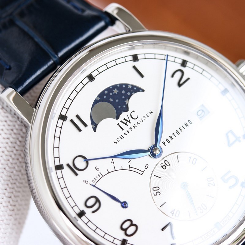 Case 316L ruostumattomasta teräksestä valmistettu kotelo, kiillotettu ja erittäin pyöreä. Pieni sekuntiosoitin sijaitsee kello 6 stop-second-toiminnolla, varustettu kiinteällä naula-asteikolla ja roomalaisilla numeroilla, kineettisen energian koristelu lisätään kello 9:ksi ja PORTOFINO (englanniksi Portofino) ja tarkka etäisyyskalenteri-ikkuna on kirjoitettu kello 3:ksi, joka on symmetrinen kaaren muotoisen liike-energiakoristeen kanssa. 12-asentoa vastaava kuun vaiheen sijainti on yhdenmukainen alkuperäisen kanssa. Voimme huomata, että tämän kellon kalenteriikkuna sijaitsee kellon reunassa ja kalenterin fontti on yhdenmukainen alkuperäisen kanssa. Pajunmuotoiset kädet osoittavat tunnit ja minuutit, ja kaksipuolinen heijastamaton kaareva safiiripinnoitettu peilihihna on italialaista vasikannahkaa. Liike on itsenäisesti kehitetty automaattisella käämitysmekaanisella liikkeellä, joka on vakaa ja tarkka. IWC:n häikäisevin läpinäkyvä kello. Sopii kaikenlaisiin liiketilaisuuksiin, yksinkertainen ja hienostunut menettämättä eleganssia. Tervetuloa kaikki kelloystävät arvostamaan sitä.