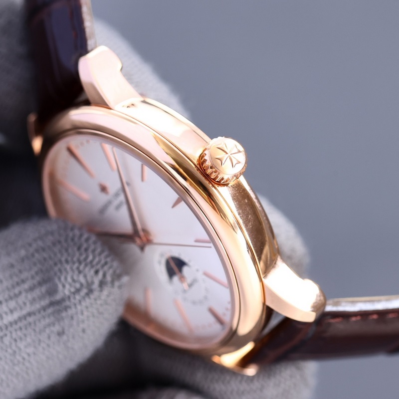 Vacheron Constantin VACHERON CONSTANTIN -sarjan miesten kello on uusi monimutkainen aurinko-, kuu- ja tähti-monitoimikello supervalolla. Varustettu alkuperäisellä tuodulla 2824-2 automaattisella käämitysmekaanisella liikkeellä, se integroi kuukausinäytön, auringon ja kuun vaiheen näytön jne. toiminnot. Se on täydellinen. Noudattamalla sveitsiläistä kellotekniikkaa, nanoplatinapinnoitettua täysteräksistä kellotekniikkaa, PVD-uunin galvanointitekniikkaa, ranskalaista safiiria naarmuuntumatonta peiliä, maahantuotua italialaista vasikannahkaa alkuperäisellä soljella, se luo huipputason täydellisen tuotteen. Koko: 40*10mm