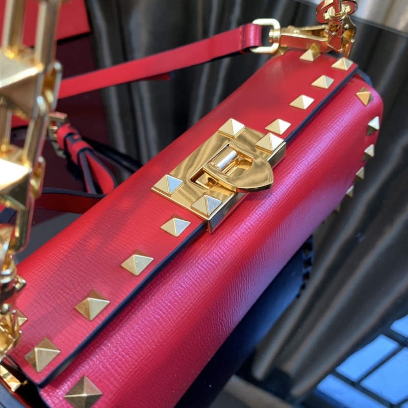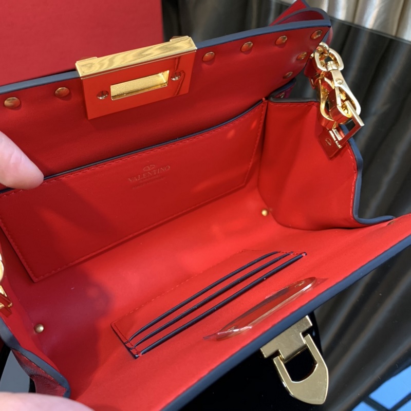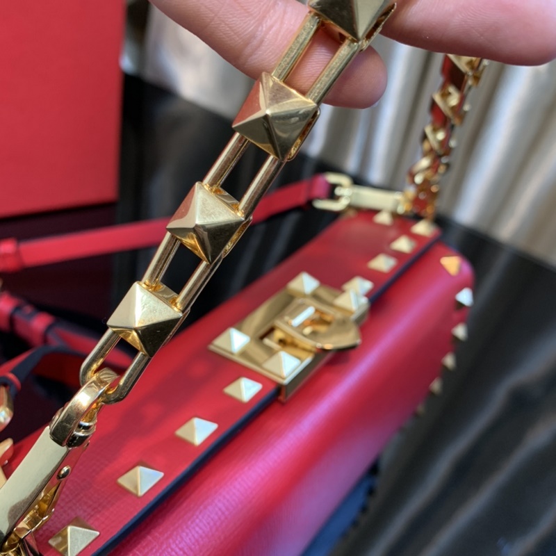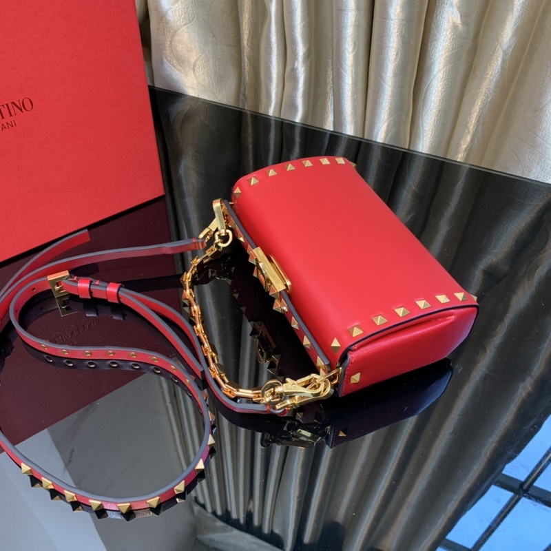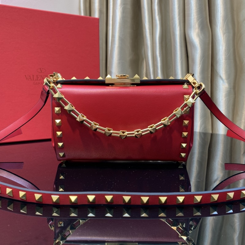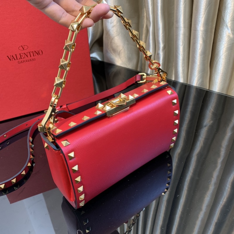 Valentinon rakeinen vasikannahkalaukku- Voidaan kantaa käsin käyttämällä ketjuhihnaa, jossa on tunnusniitejä ja/tai poikkirunkoa käyttämällä nahkahihnaa