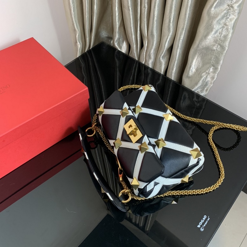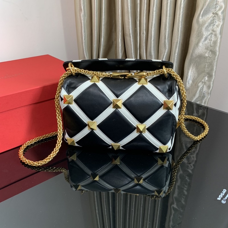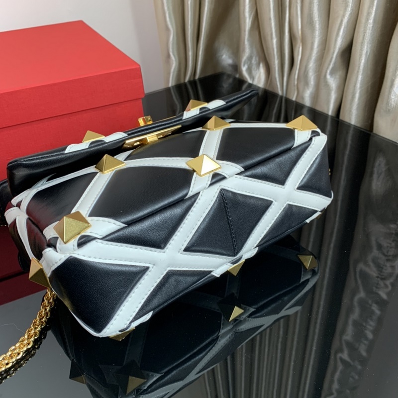 Valentino Small Diamond Small Nappa-nahkaketju isoilla nastoilla Tikattu rakenne, koristeltu ylisuurilla niiteillä, irrotettavilla kahvoilla ja liukuvalla ketjukoristeella