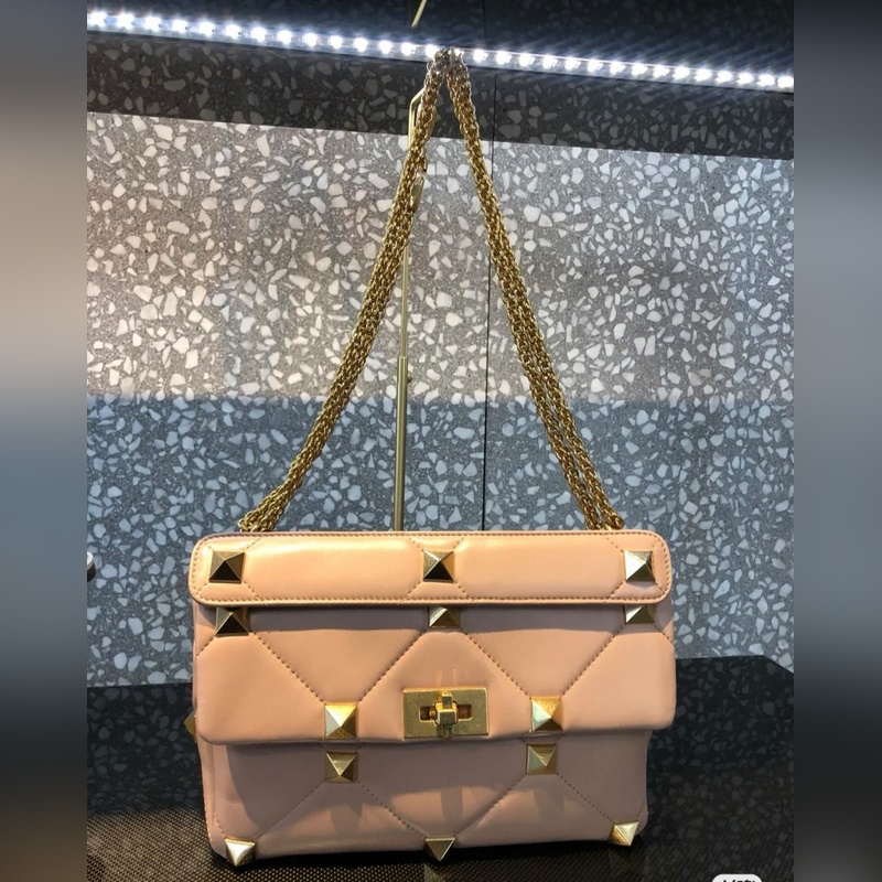 Valentino Nail Inspiration Roman Stud Nappa -nahkaketjulaukku Tikattu rakenne, koristeltu ylisuurilla niiteillä, irrotettavilla kahvoilla ja liukuvalla ketjukoristelulla