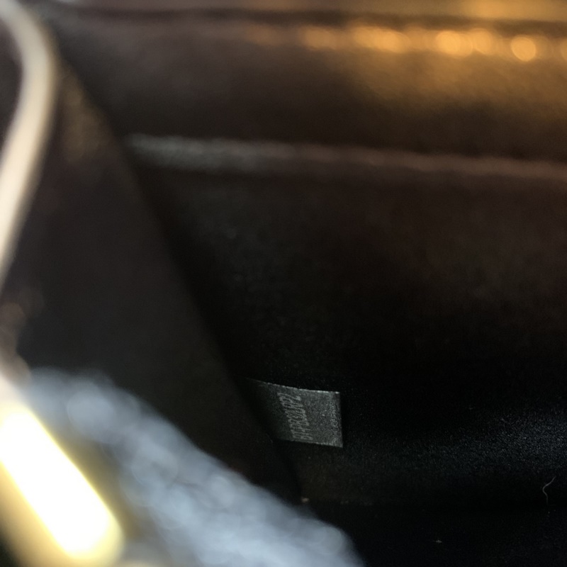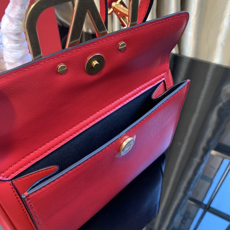 Sisustettu ikonisilla niiteillä ja kaksinkertaisella lukolla- Logo ja tarvikkeet käsitelty antiikkimessinkiefektillä- Kaksinkertainen lukkokiinnitys- Magneettinen etutasku- Säädettävä ja irrotettava olkahihna- Pohjasuojakuvio- Punainen lampaannahkavuori, sisäpuoli: takatasku, vetoketjullinen etutasku, vetoketjullinen tasku. 23 x K 20 x S 6 cm- Valmistettu Italiassa- Tyylinumero: 2041 Nro: SX96181300