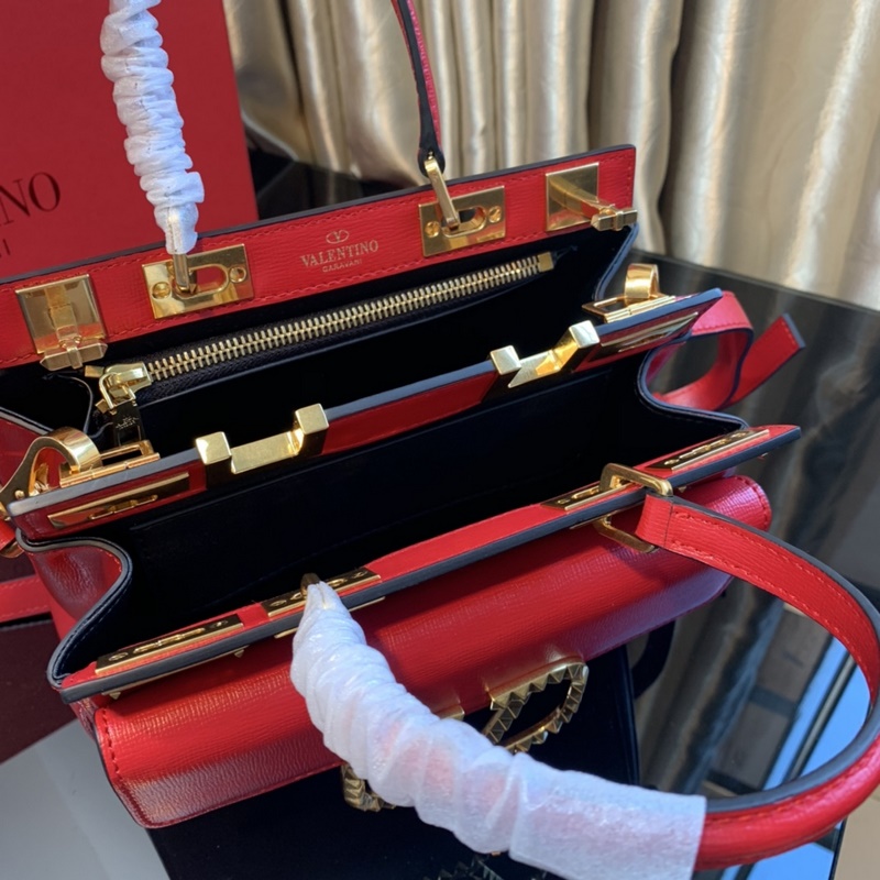 Valentinon rakeinen vasikannahkainen käsilaukku- Rakennemuotoilu