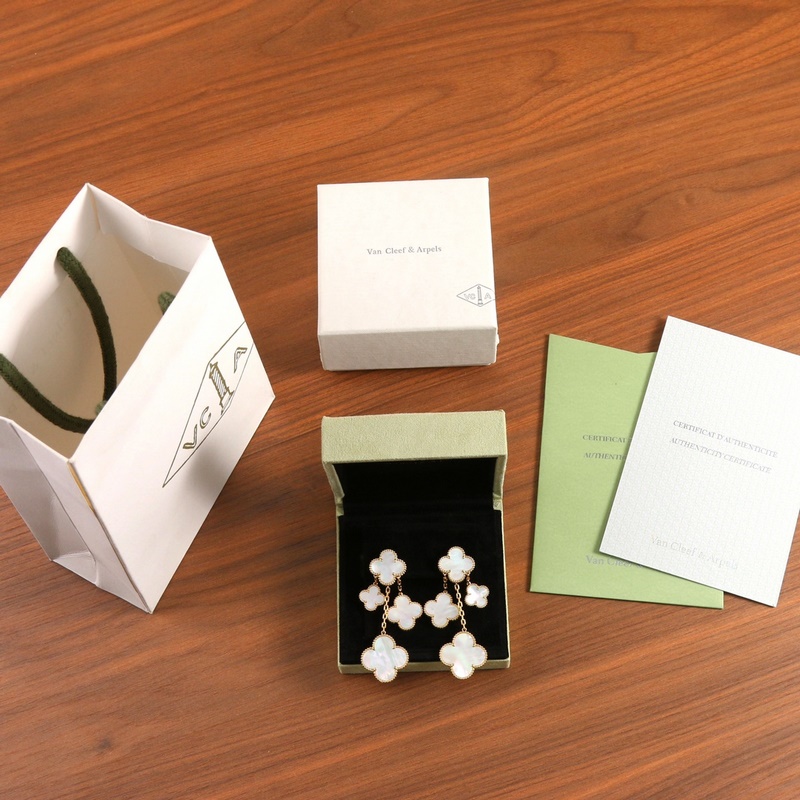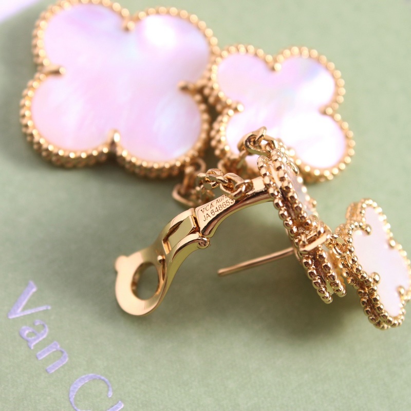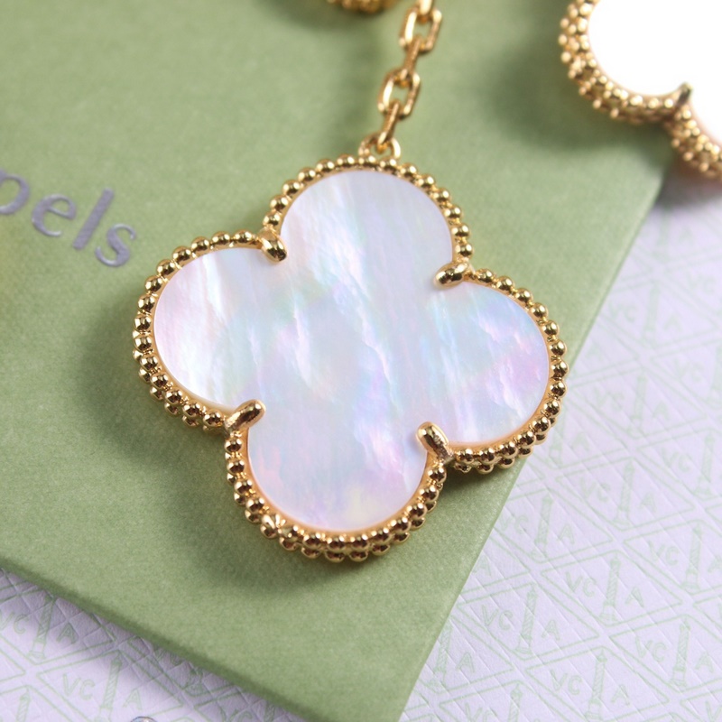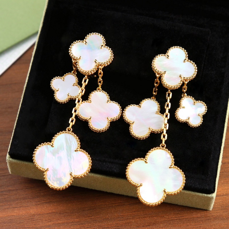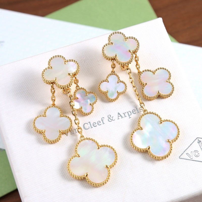 Van Cleef&Arpels Magic Alhambra nelilehtiset apilakorvakorut valkoisilla kuorilla