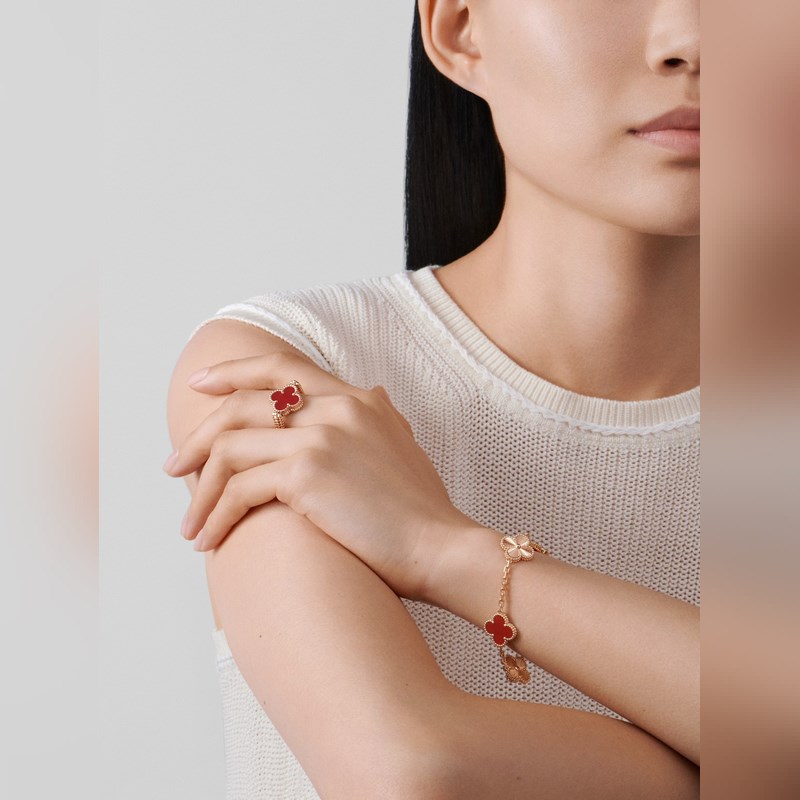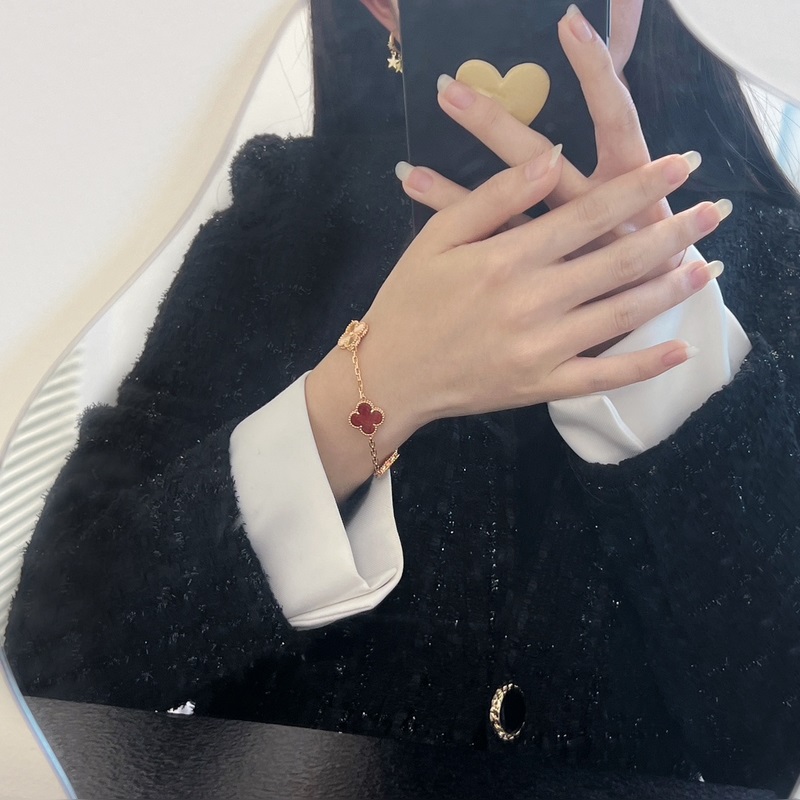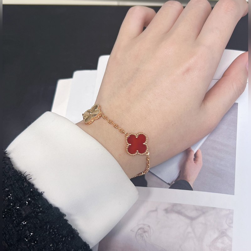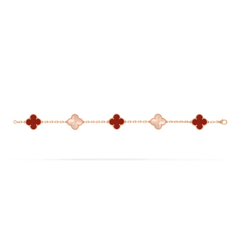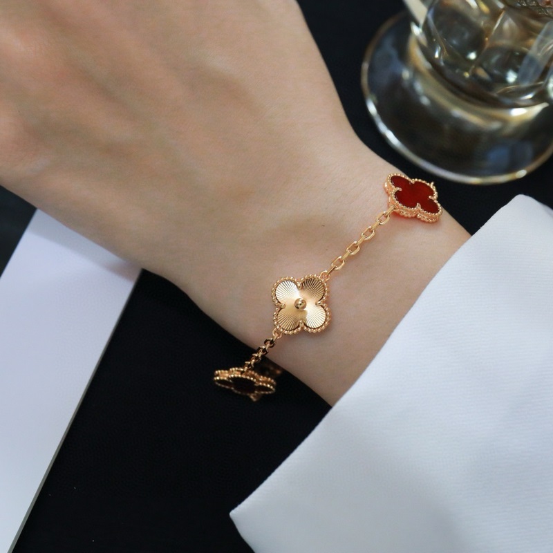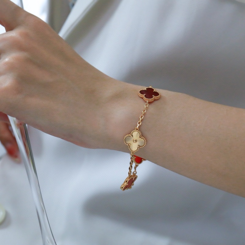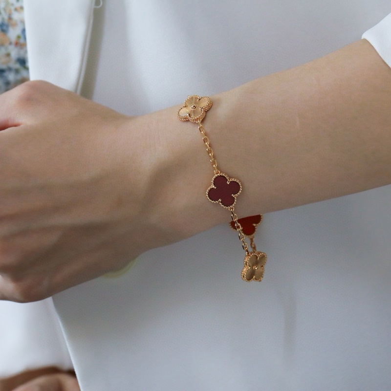 -Van Cleef&Arpels Van Cleef&Arpels laserkaiverrettu punainen akaatti nelilehtinen apila viiden kukan rannekoru