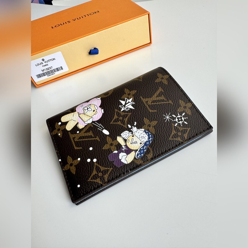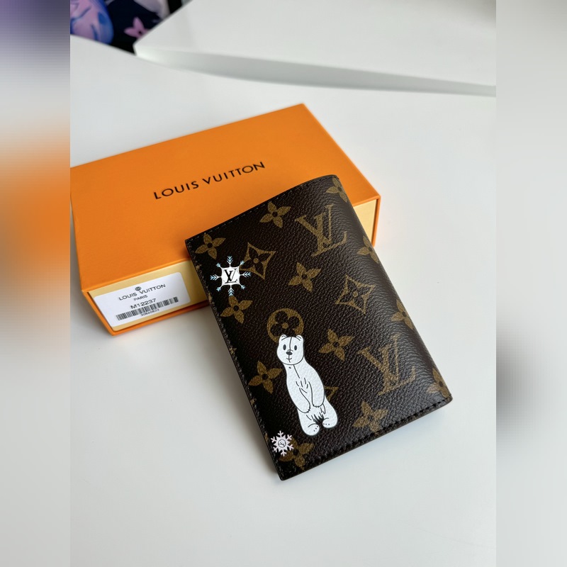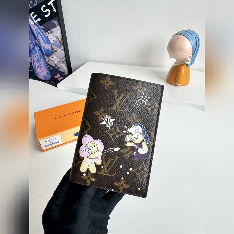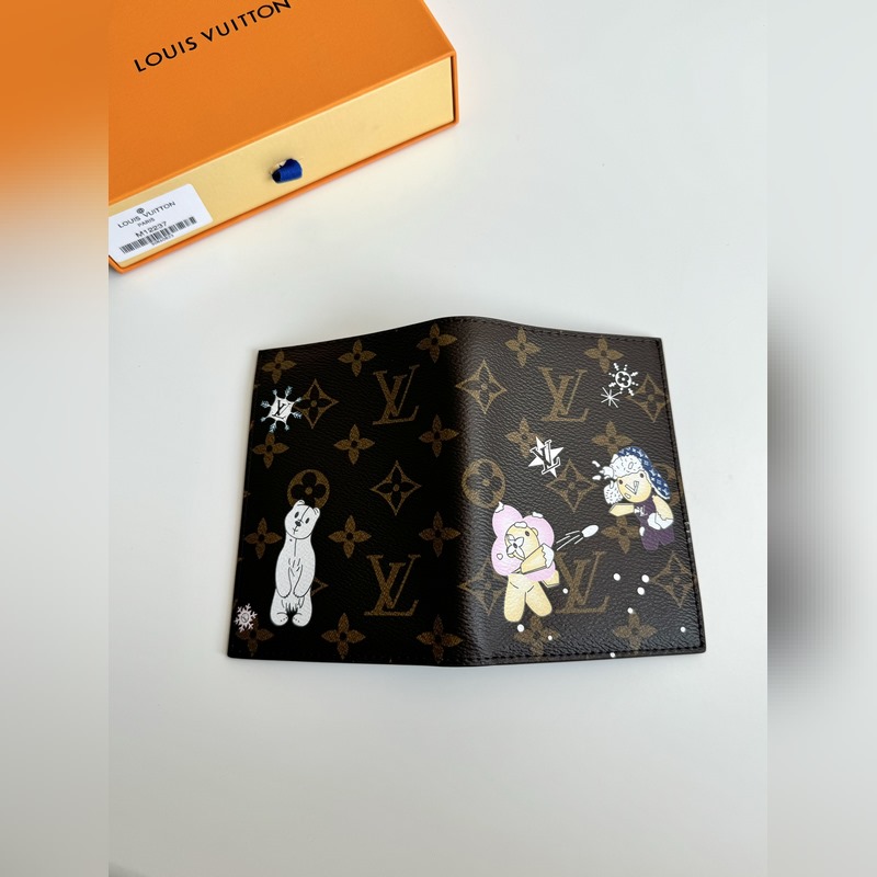 Ainutlaatuinen valokuva alkuperäisestä M12237:stä ulkomailta. Tämä passinpidike käyttää brändin maskottia Vivienneä näyttämään Snow Show -sarjan hauskaa viehätystä. Se kuvaa LV-lumihiutaleita ja söpöjä jääkarhuja Monogrammi-kankaalle. Nahkavuori on viimeistelty, ja läppätasku ja korttilokero mahdollistavat säännöllisen säilytyksen. Koko: 14×10×2,5 cm