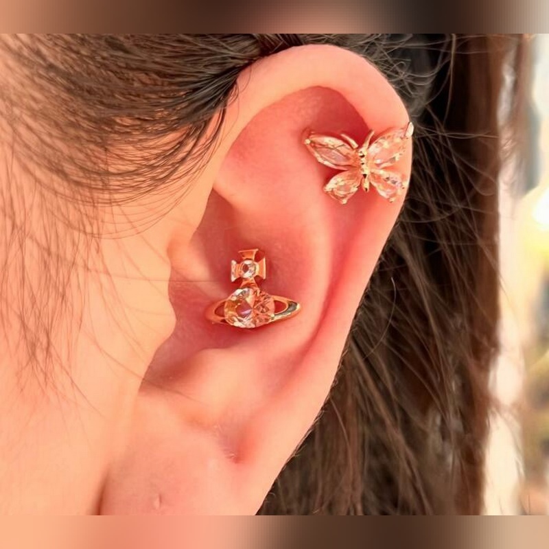 Vivivene Queen Mother Pink Butterfly tekojalokivi Saturn AB korvakorut