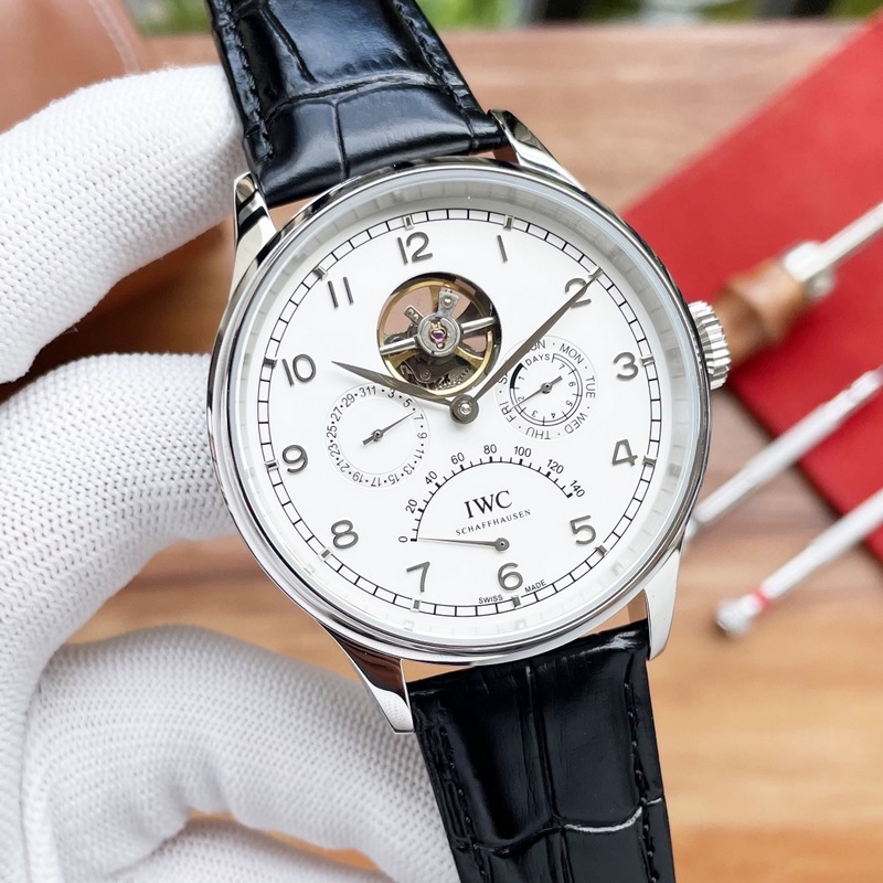Ainutlaatuinen ensijulkaisu, HD real shot, korkealaatuinen tuote Merkki: IWC Vauhtipyörä Uusi tuotetyyppi: boutique miesten kello Ranneke: aito lehmännahkainen ranneke Liike: huippuluokan täysin automaattinen mekaaninen liike Peili: mineraalivahvisteinen lasi (teräväpiirto) Tyylikäs maku, laaja tunnelma, kekseliäisyys, ranteen aarre Koko: halkaisija 1241 mm Myynti: