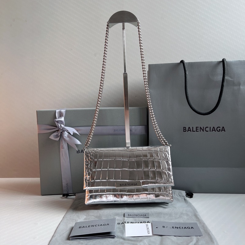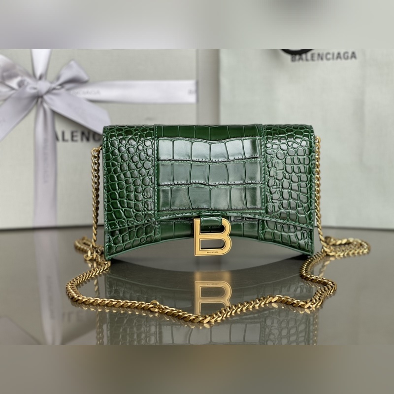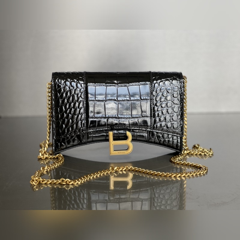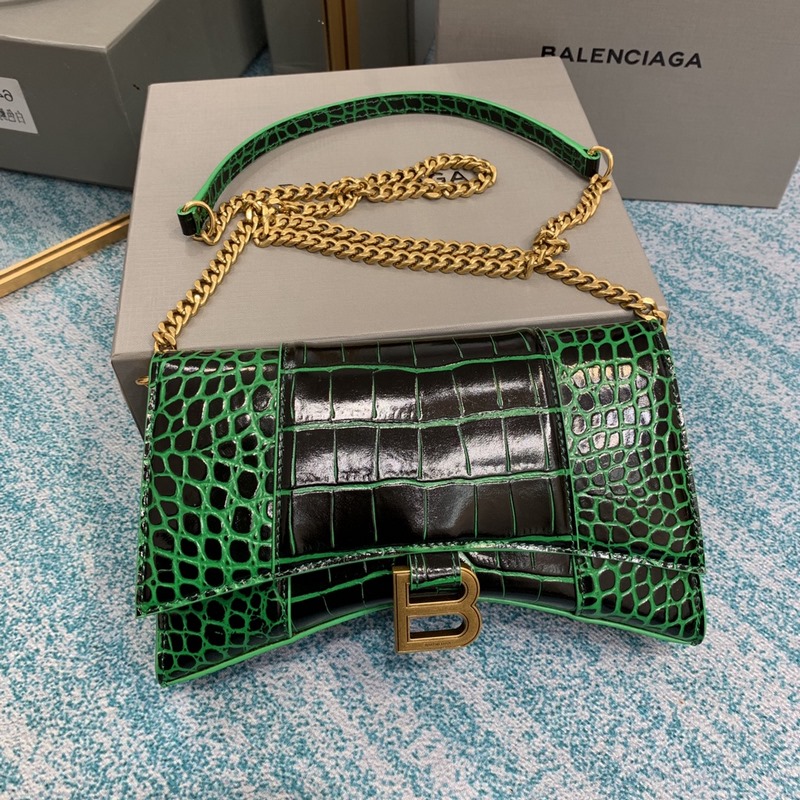 Balenciaga Hourglass Chain Replica Bag kiiltävä krokotiilin kohokuvioitu nahka