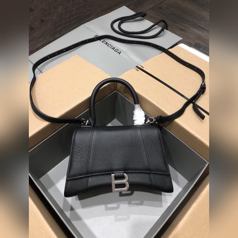 Balenciaga Black Pebbled Hourglass Replica Bag, jossa on päivitetyt hopealaitteiston VIP-pakkaukset