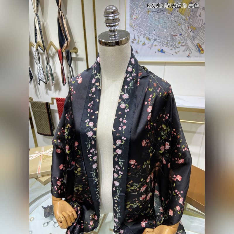 Burberry B Rose -painettu pitkä silkkihuivi 100 % Premium Mulberry silkkiä