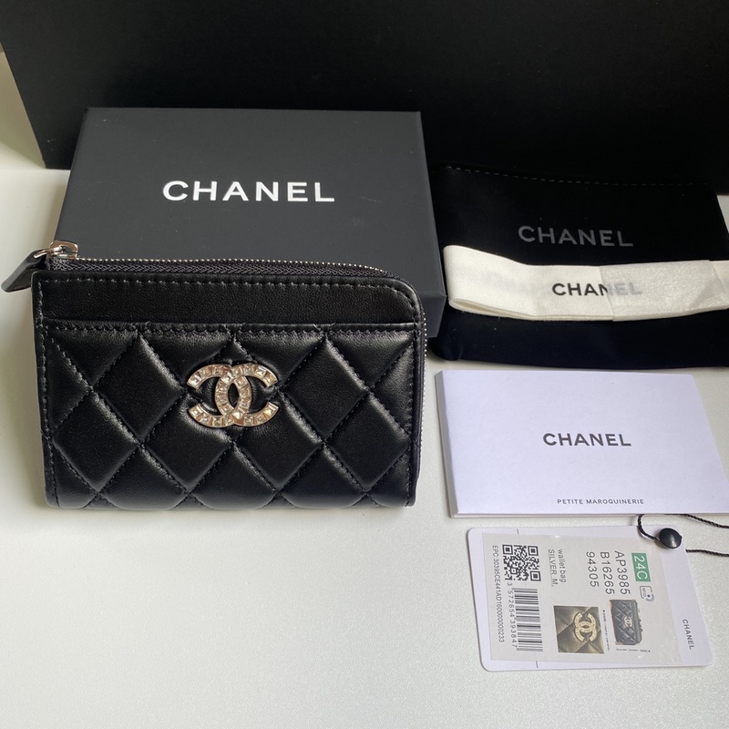 CHANEL 24 Uusi 7-muotoinen yhden vetoketjun korttikotelo malli 3179 alkuperäinen laatu