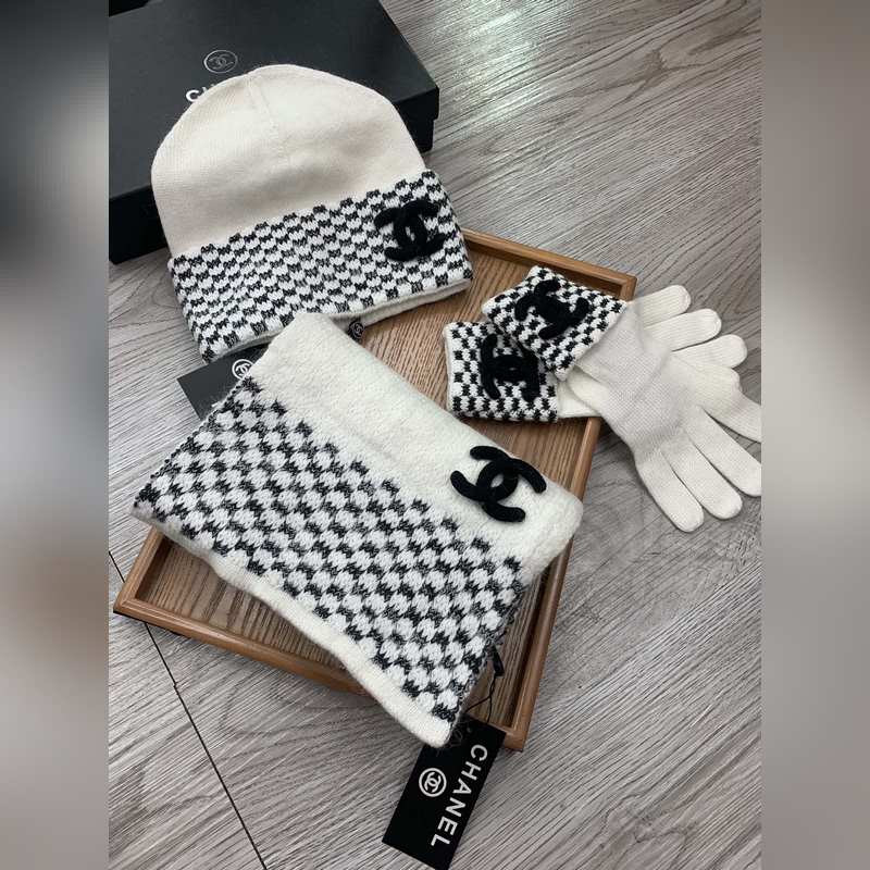 Chanel villa kolmiosainen setti hattu huivi käsineet Cozy Winter Classic