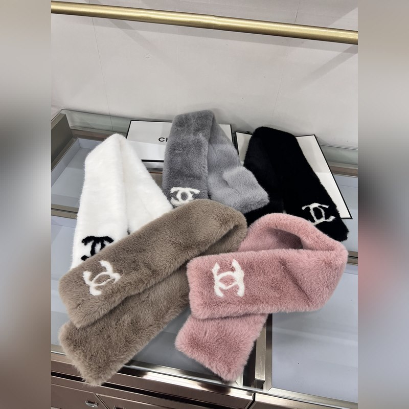 Chanel Pehmokaulushuivi Musta Valkoinen Harmaa Kahvin pinkki Monipuolinen