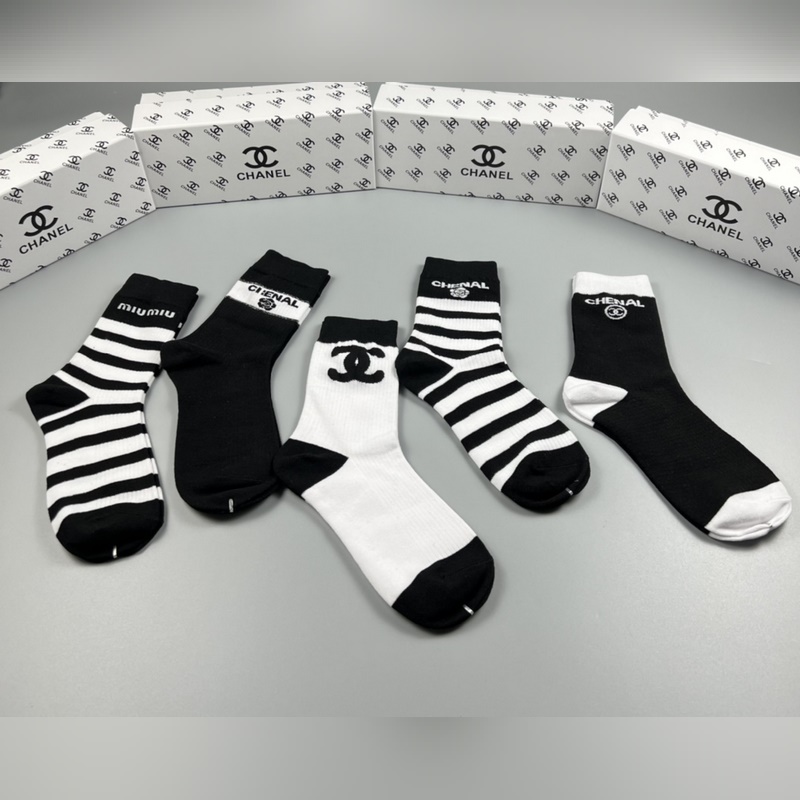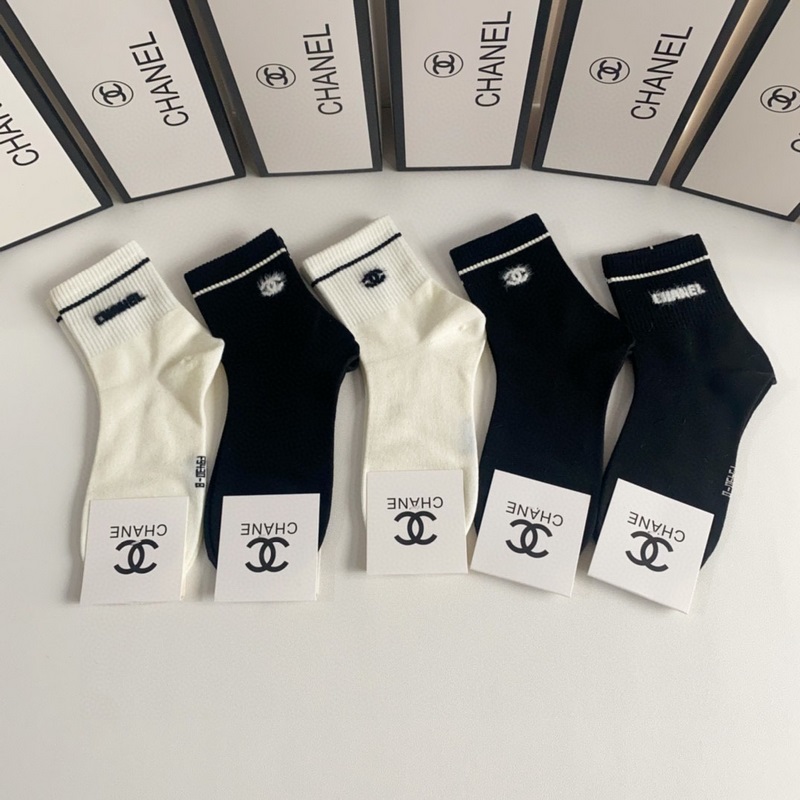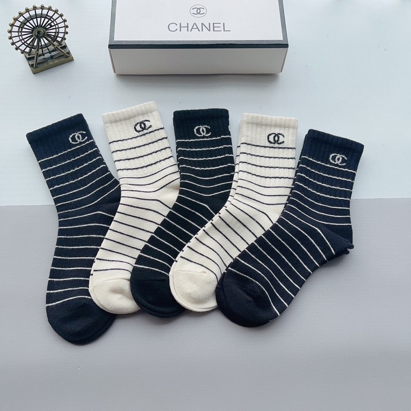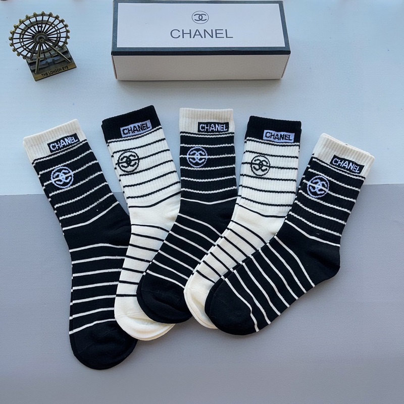 CHANEL Classic Pohkeen keskisukat High Version pehmeää puuvillaa 5 paria