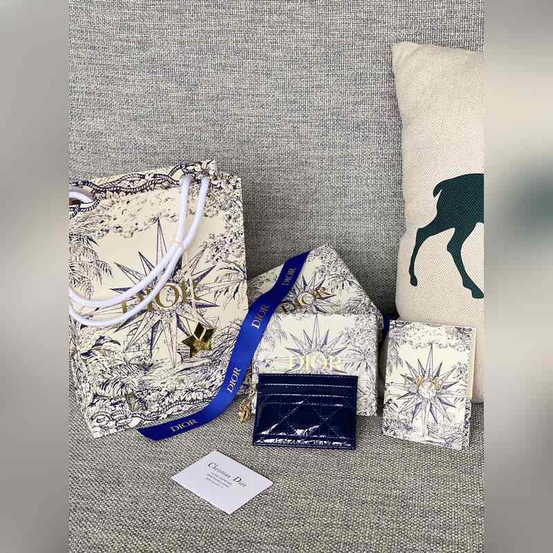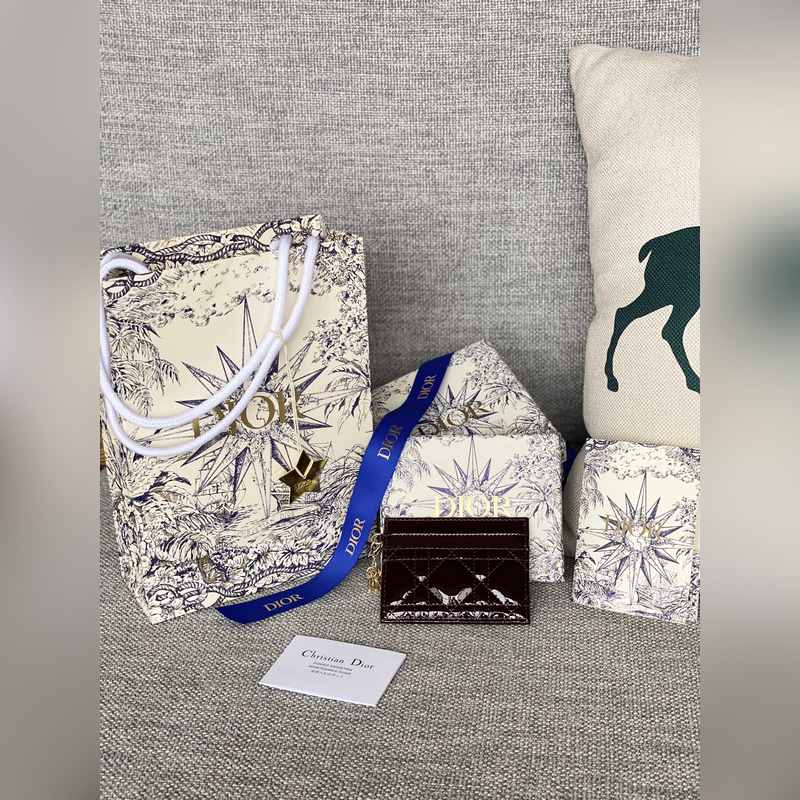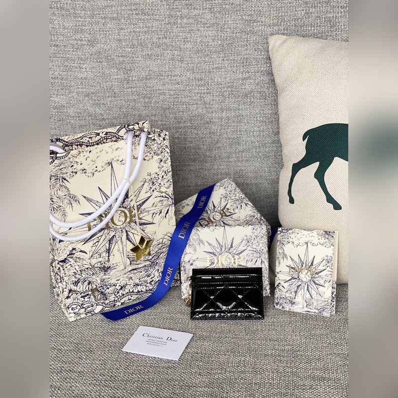 Dior Caro viisipaikkainen korttikotelo Alkuperäinen Litchi Grain Leather Uusi malli
