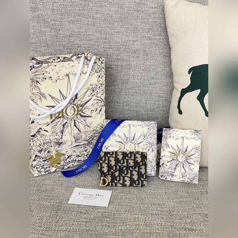 DIOR Oblique Galaxy -nahkainen lompakko 2ES, kaksinkertainen, laadukas lehmännahka