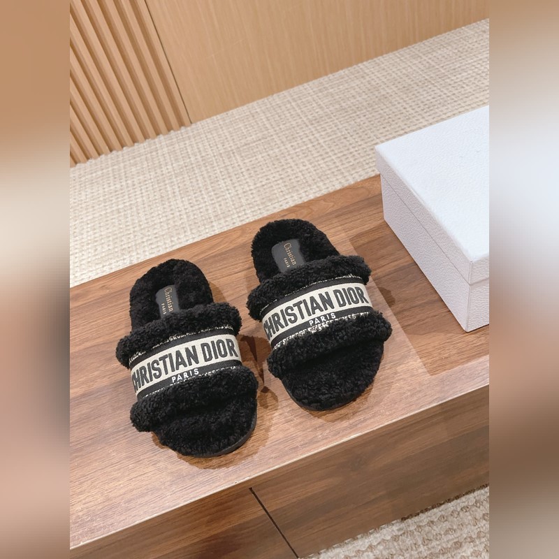 Dior Brodeerattu raidallinen Logo Fleecevuorattu Mule Tossut Syksy/Talvi Wool Collection