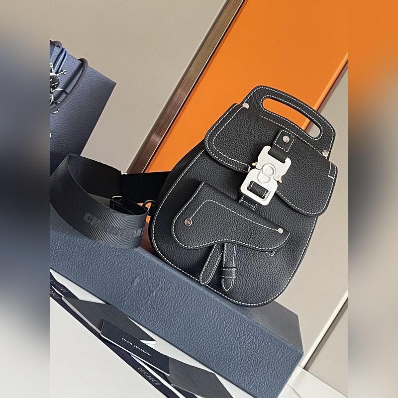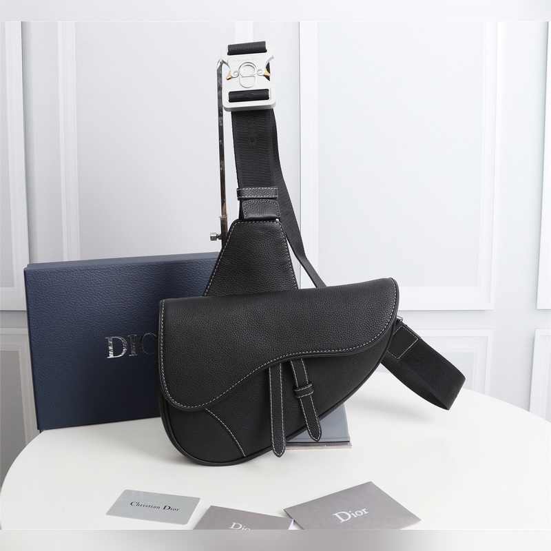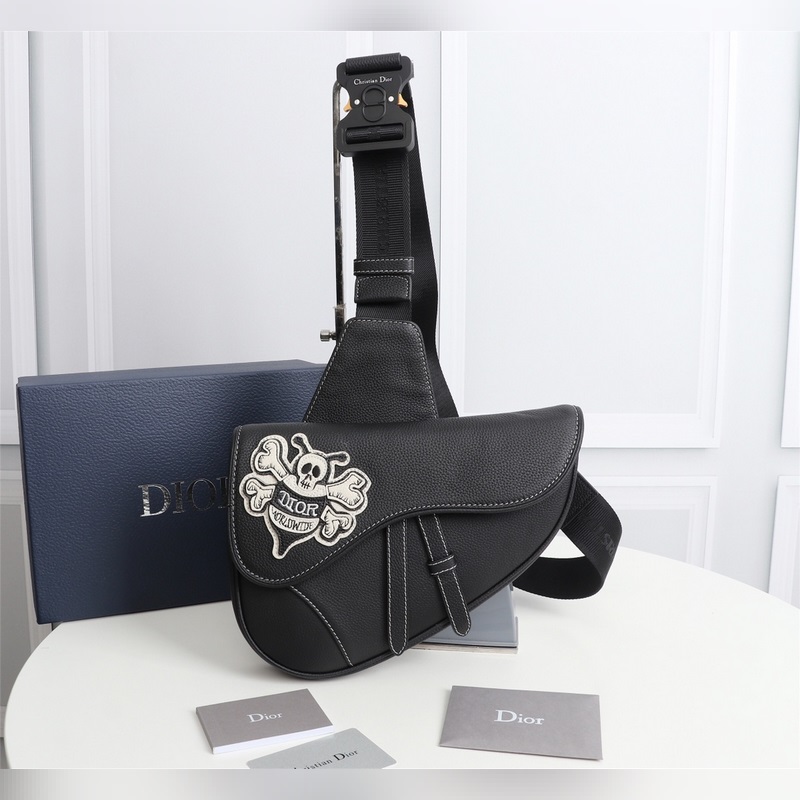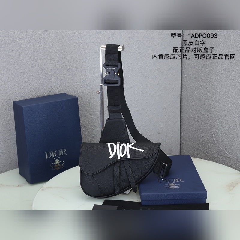 Dior Miesten satula Crossbody Replica Bag 1ADPO093 musta nahka valkoinen logo