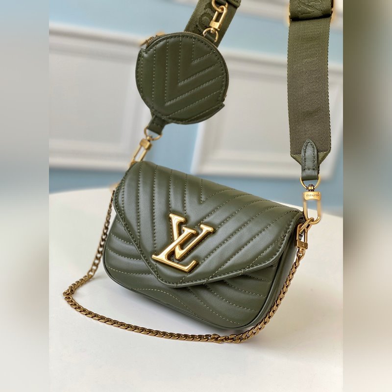 LV New Wave M56471 Khakinvihreä tikattu vasikanahkainen monitoimilaukku